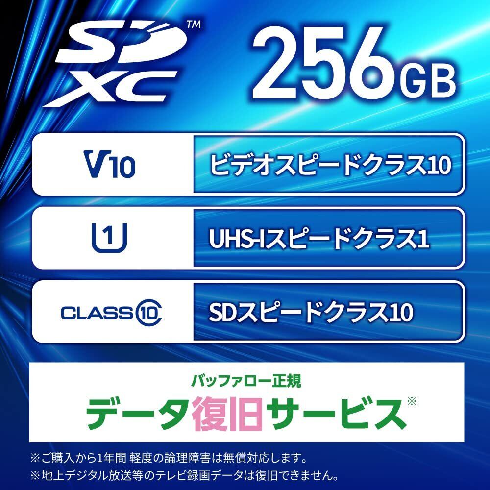 バッファロー SDカード 256GB 100MB/s UHS-1 スピードクラス1 VideoSpeedClass10 IPX7 Full HD データ復旧サービス対応 RSDC-256U11HA/N