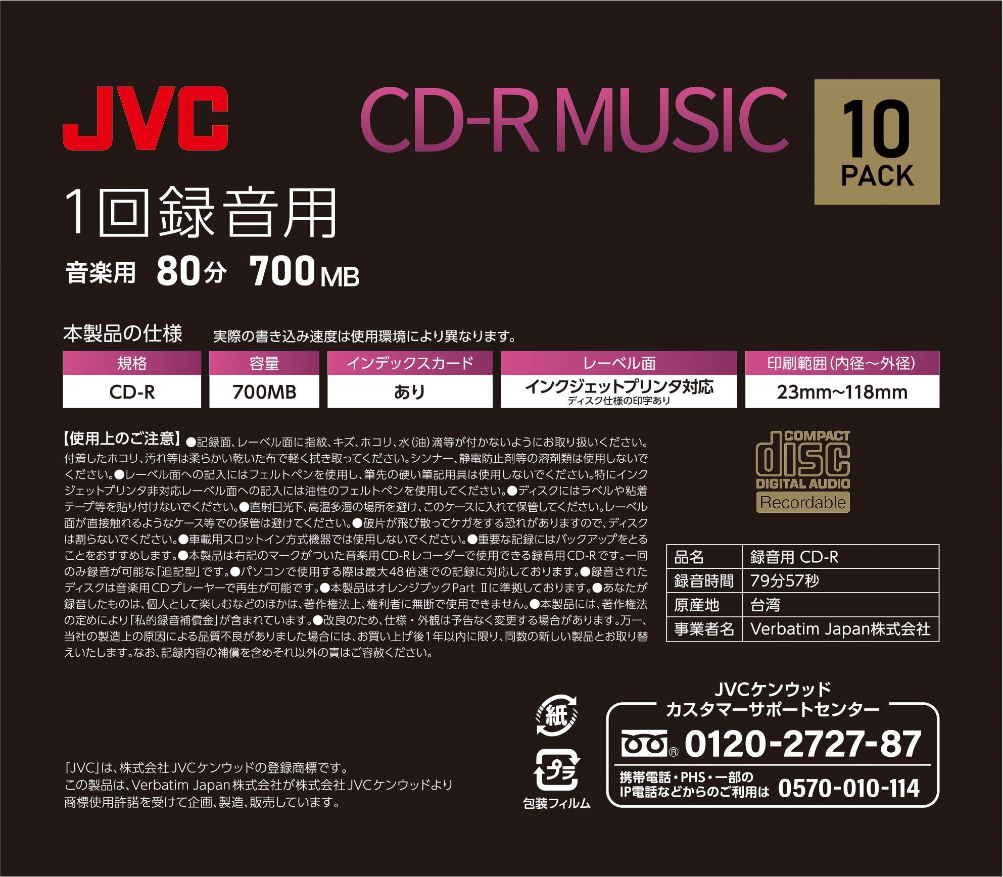 JVC 1回録音用 CD-R 片面1層 80分 10枚 ホワイトディスク AR80FP10C2