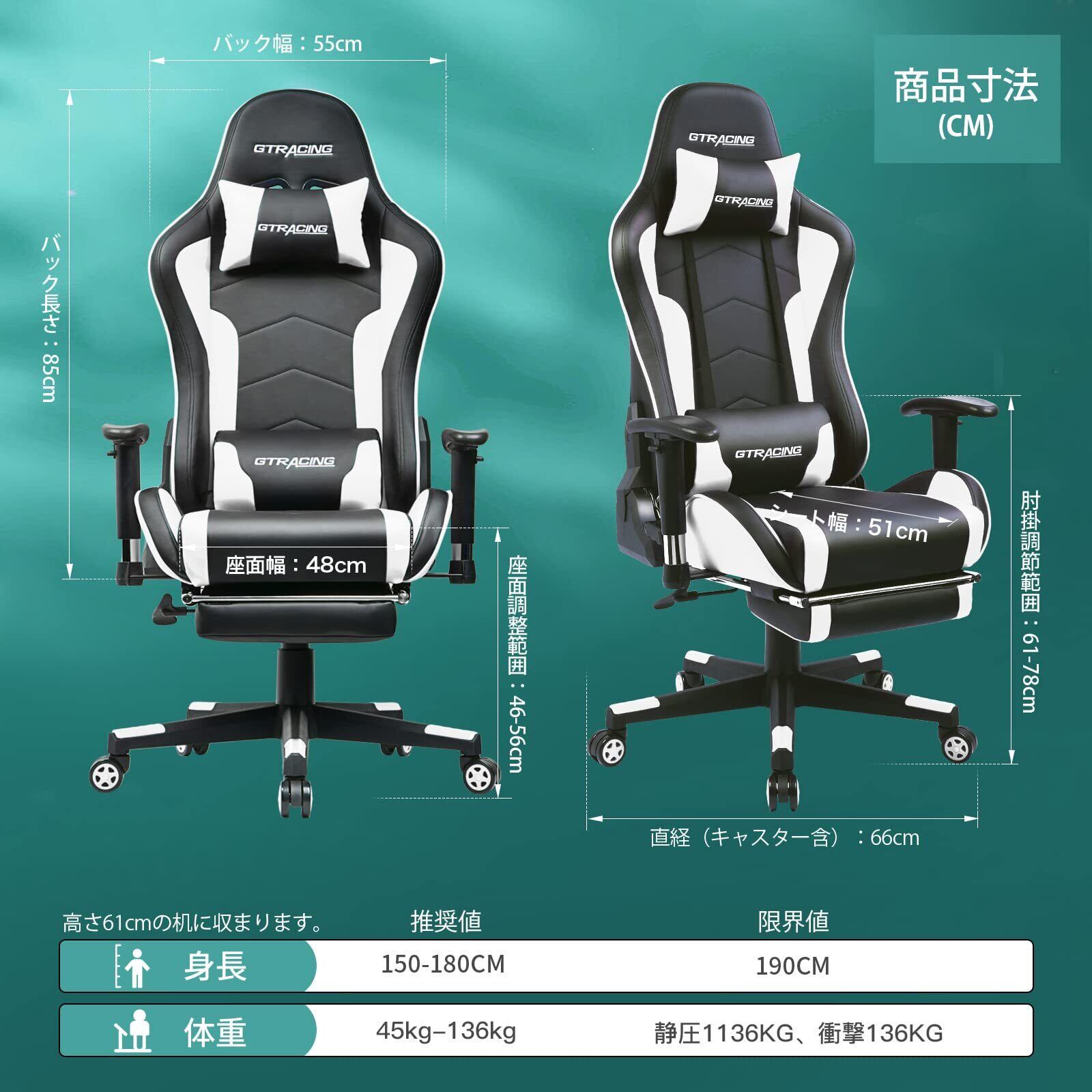 GTRacing ゲーミングチェア スピーカー付き オットマン ゲーミングスピーカー付き サラウンド効果 オフィスチェア フットレスト デスクチェア ゲーム用チェア リクライニング パソコンチェア ハイバック ヘッドレスト ランバーサポート ひじ掛け付き PUレザー PC/PS4/PS5/XBOX/SWITCH等対応(専用USBアダプタ使用) GT890MF-White | impsmile