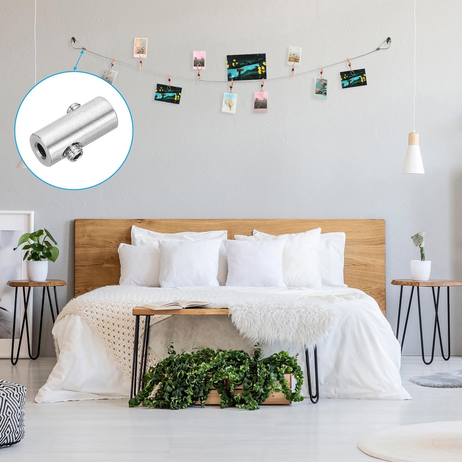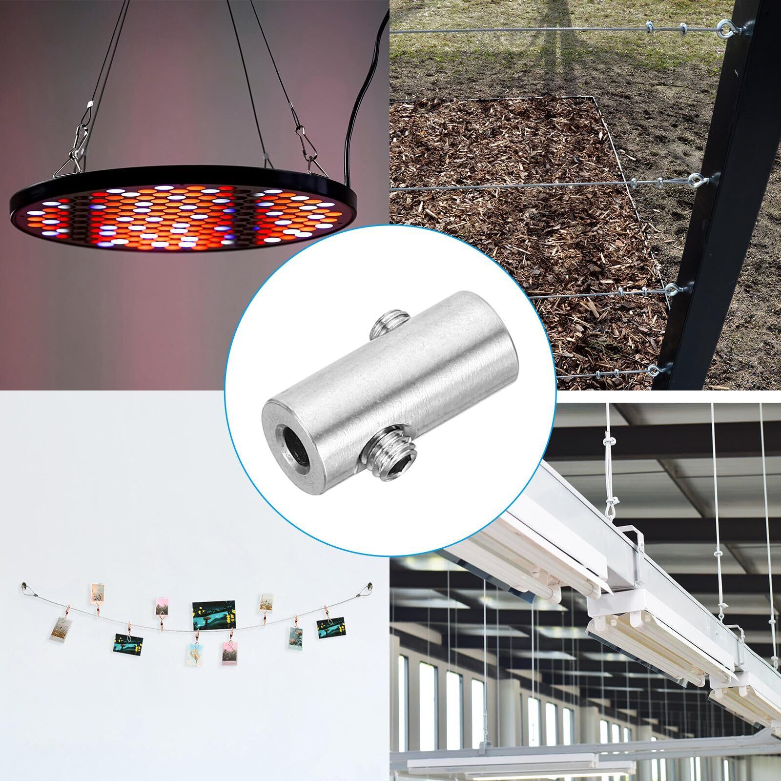 PATIKIL 6 mmホール ワイヤーロープクリップセット 2個 304ステンレス鋼 二重穴 ロックケーブルクランプクリップ M5六角ネジスパナ付き ケーブル継手用 シルバー