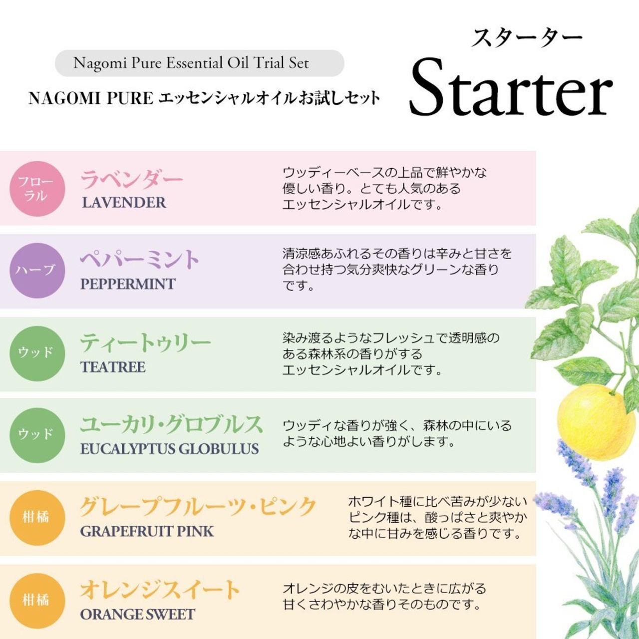 NAGOMI AROMA エッセンシャルオイル お試しセット【AEAJ認定精油】 (スターター)