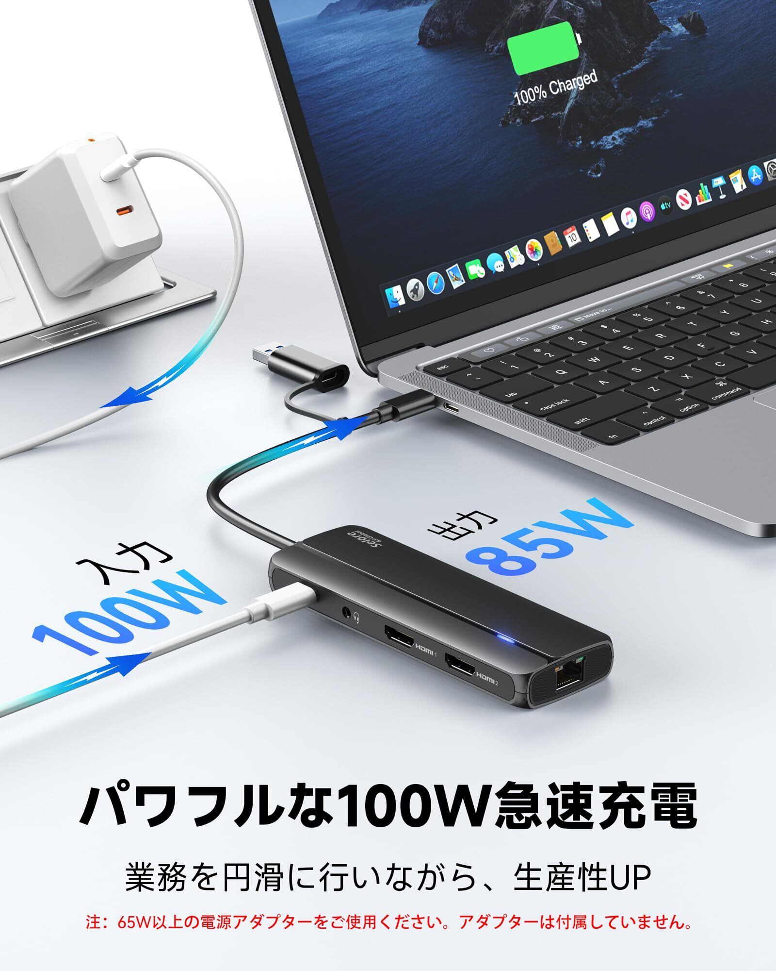 【10-in-1 2*HDMI Mac OS MST拡張対応】USB C ドッキングステーション type-c usb ハブ type-c ハブusbハブ hdmi 87W出力 2*HDMI出力ポート/1*USB A3.0ポート/1*USB C3.0ポート/SD&Micro SDカードスロット搭載/Audio/Mic Mac OS Dell/HP/Surfaceデバイス等対応 ドライバーが必要