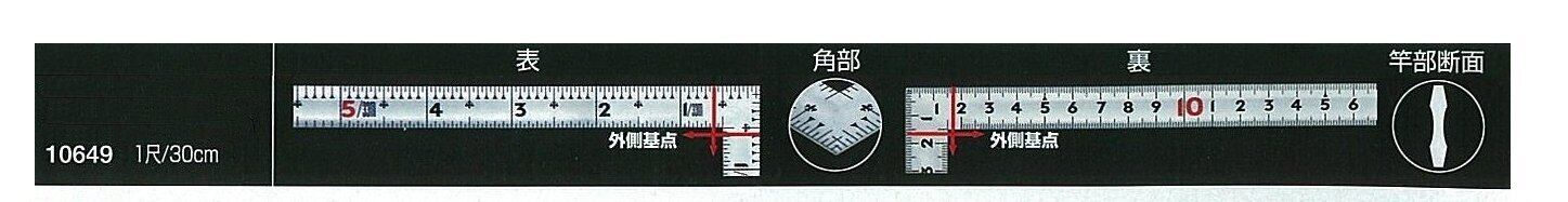シンワ測定(Shinwa Sokutei) 曲尺 同厚 併用 1尺裏面30cm 名作赤数字入 シルバー 10649