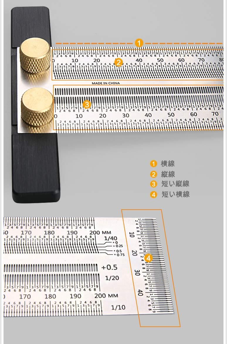 【特徴】従来のケガキゲージと異なり、精度0.25mmまでの縦線(垂直線)と精度0.5mmまでの横線(水平線)を引けます。※図の通り