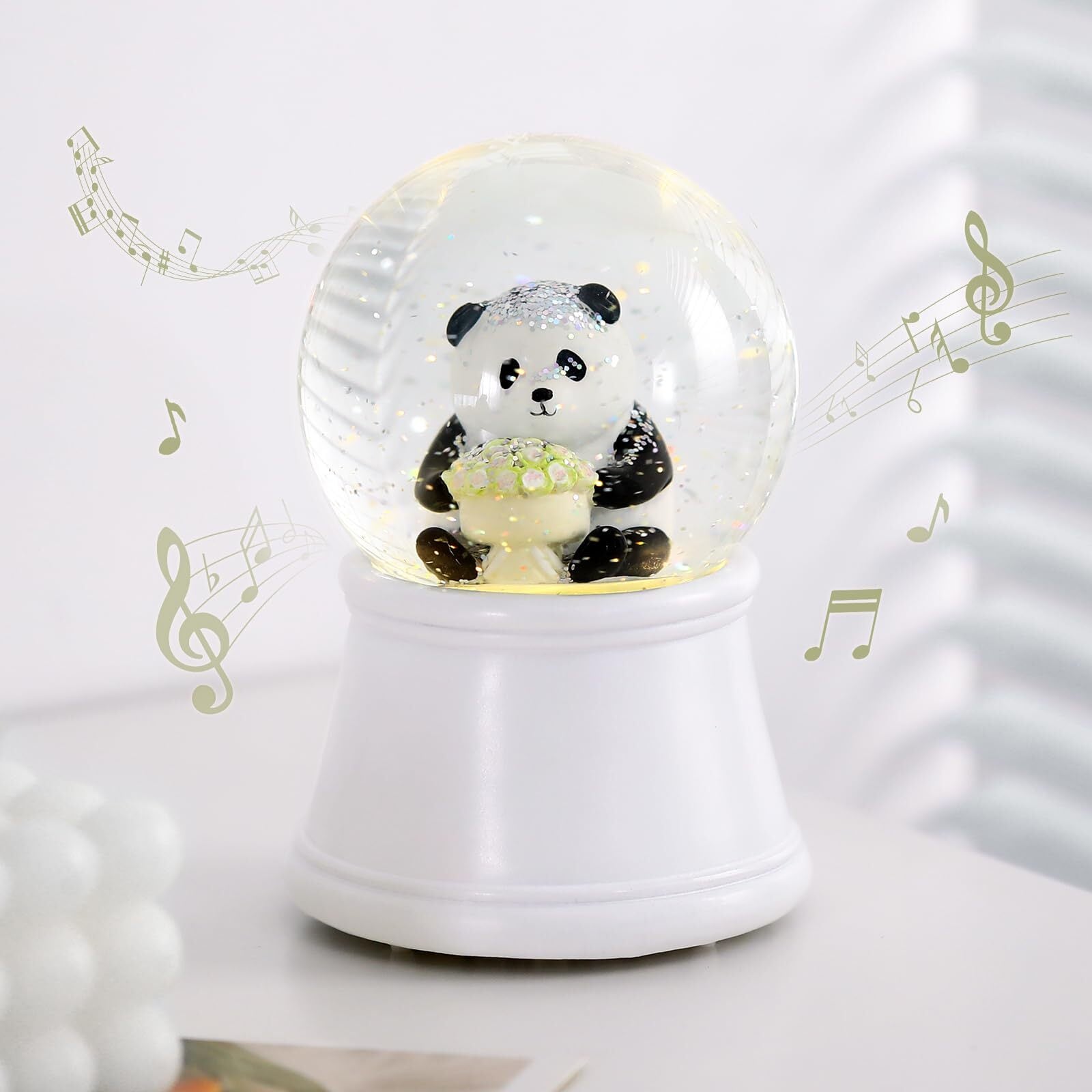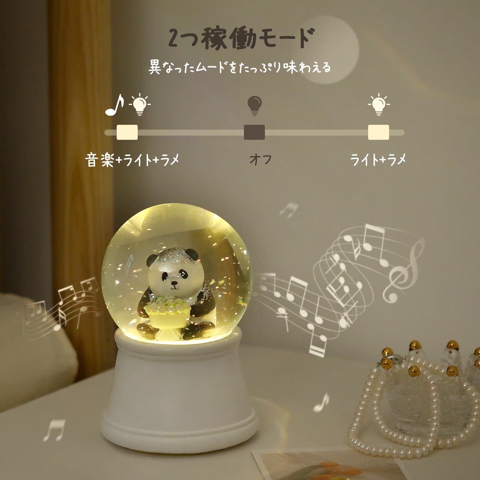 スノードーム Lewondr 母の日 プレゼント オルゴール 母の日 花 【ギフトボックス包装】 LEDライト付き スノーグローブ インテリア 誕生日/母の日/記念日お祝い プレゼント ローズを抱えたパンダ ホワイト | impsmile