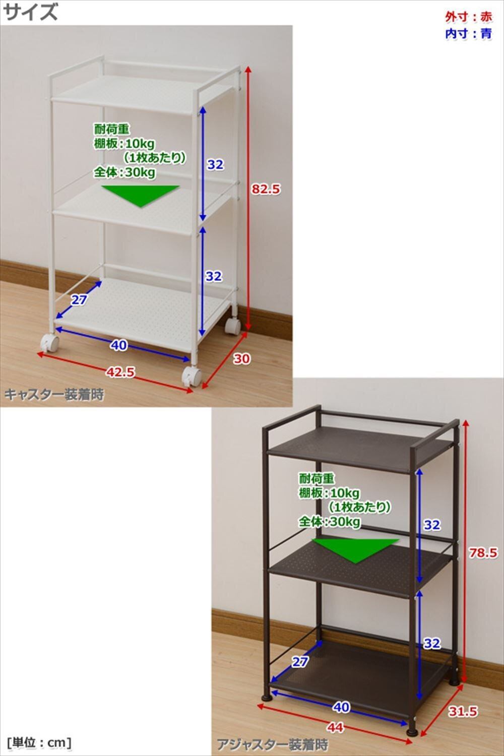 棚板サイズ:幅40×奥行27cm、こぼれ止め高さ5cm