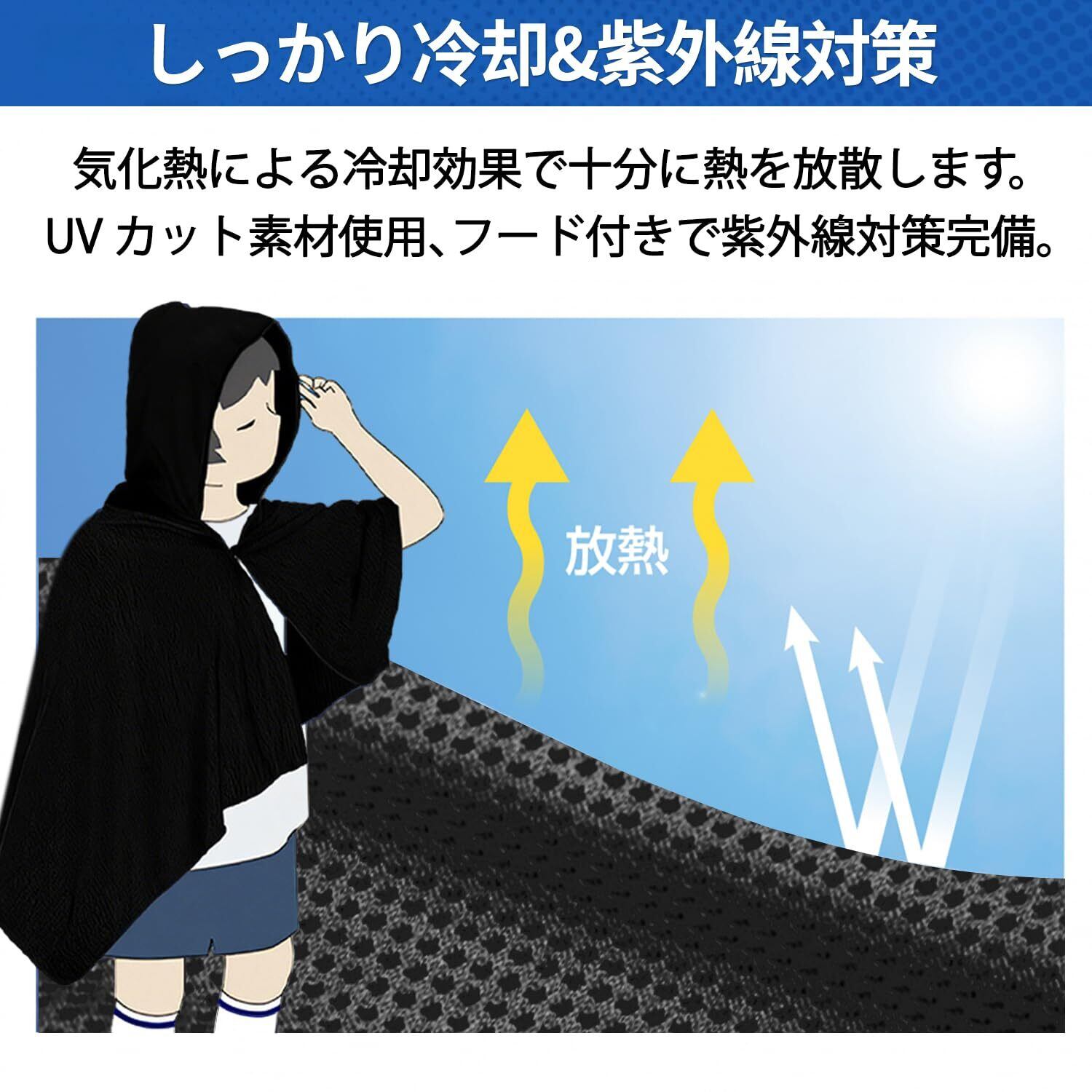 【水濡り絞り後生地温度約 15℃下がり】冷却グッズ 冷感ポンチョは、気化熱の作用を利用して冷却効果を発揮します。吸水性がとても強く、乾きも早いです。生地の温度が約 15℃下がり、体の広い範囲を冷却することができます。ボタンのデザインで、頭部と首の部分がよりフィットし、夏に着ても負担がありません。