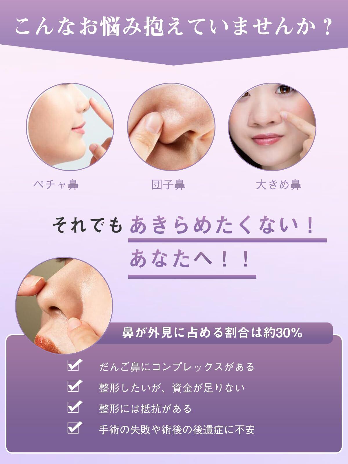 【外から見えず、自然に鼻を高く見せられる】整形しなくても、簡単にイメージを変え、鼻に入れるので鼻プチが外に見えず、自然に高く見せる事が出来る。誰でも気軽に使える、二次元キャラの鼻は高く整っているので、コスプレにも便利なアイテムになれる。