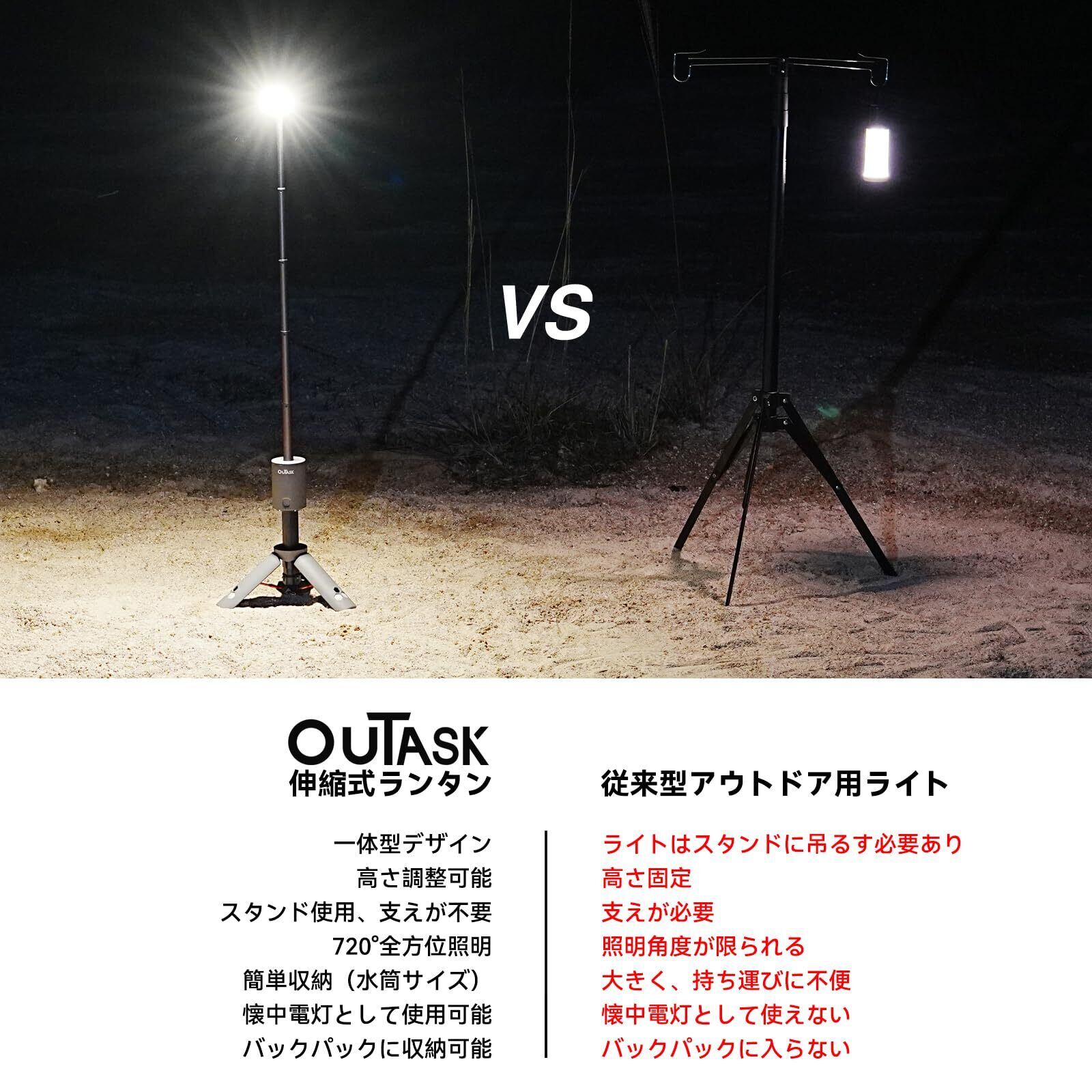 Outask LEDランタン ポータブル 三脚付きランタン 業界初の収納式キャンプ ランタン 充電式 キャンプ用ランタン 12000mAhバッテリー付き IPX6/IPX7防水懐中電灯キャンプランタン アウトドア/キャンプ/BBQ/家庭照明/夜釣り/緊急SOS 防災グッズ 停電対策