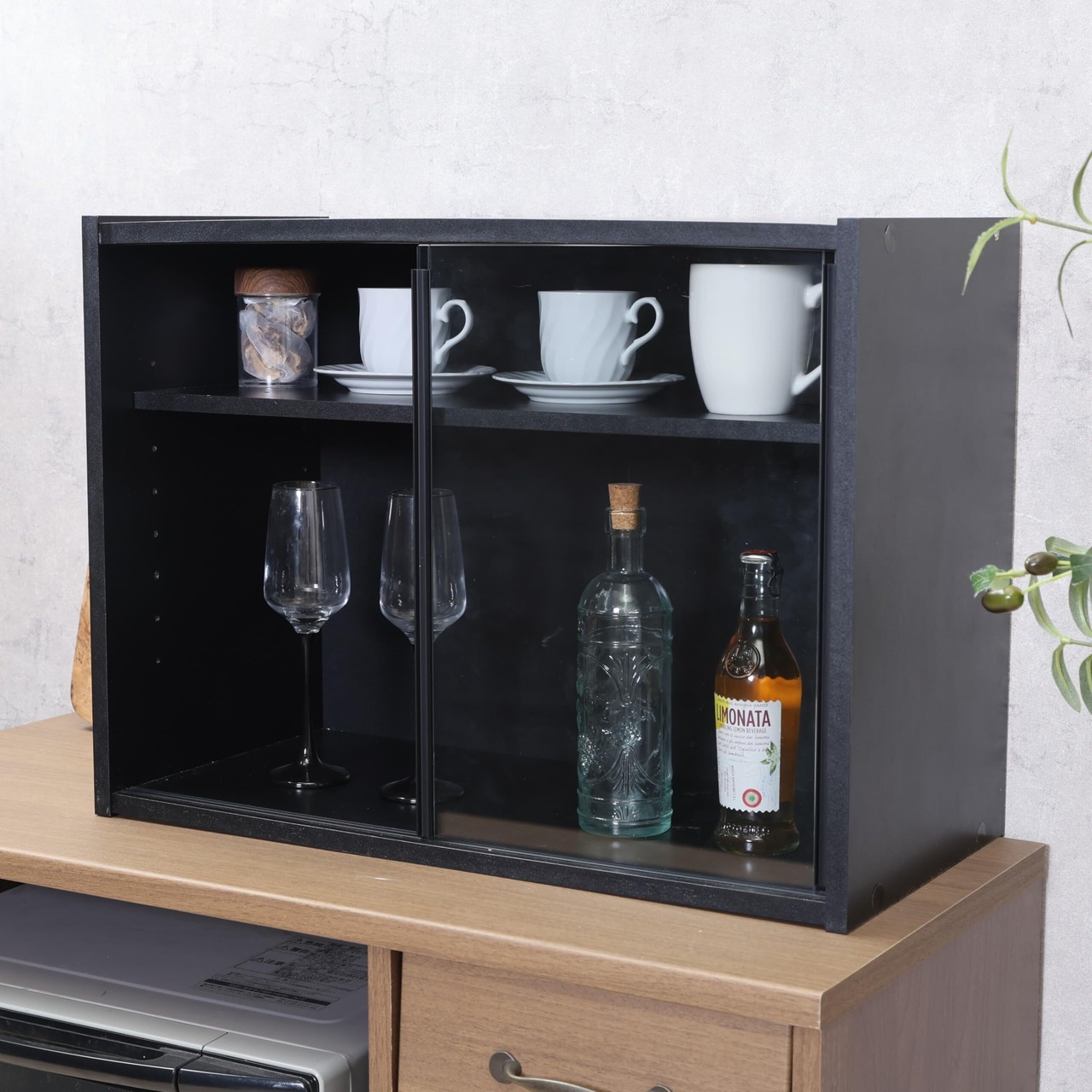 不二貿易 食器棚 キッチン収納 幅60×奥行29×高さ44cm ブラック ガラス扉 可動棚 組立品 99699