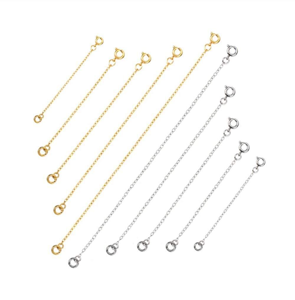 LIKENNY 延長 チェーン ネックレスの長さを調整用 ステンレス製 5cm 7.6cm 10.16cm 12.7cm 15.24cm 10本セット (シルバー&ゴールド )