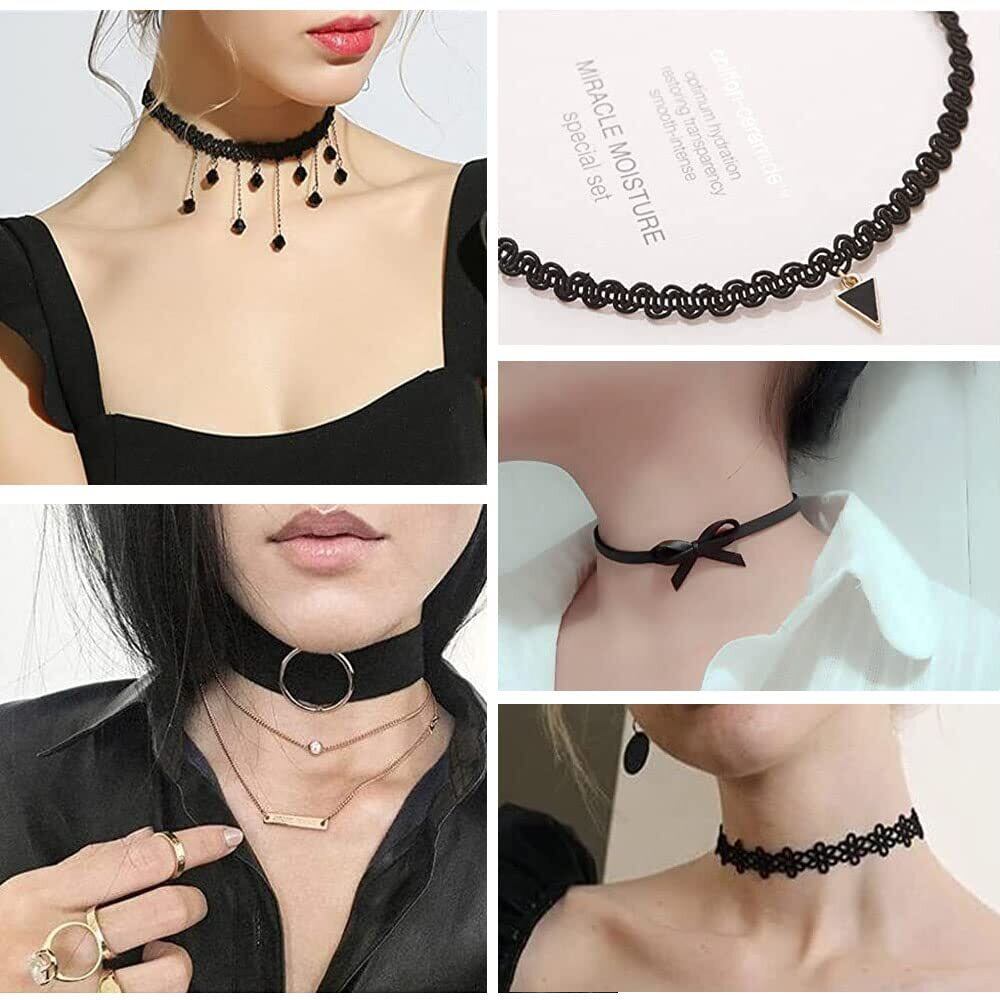 [サムコス] レディースチョーカー 20点セット リリィチョーカー リボン作り ペンダント付き カジュル ブラックセット 伸縮タイプ 調整可能