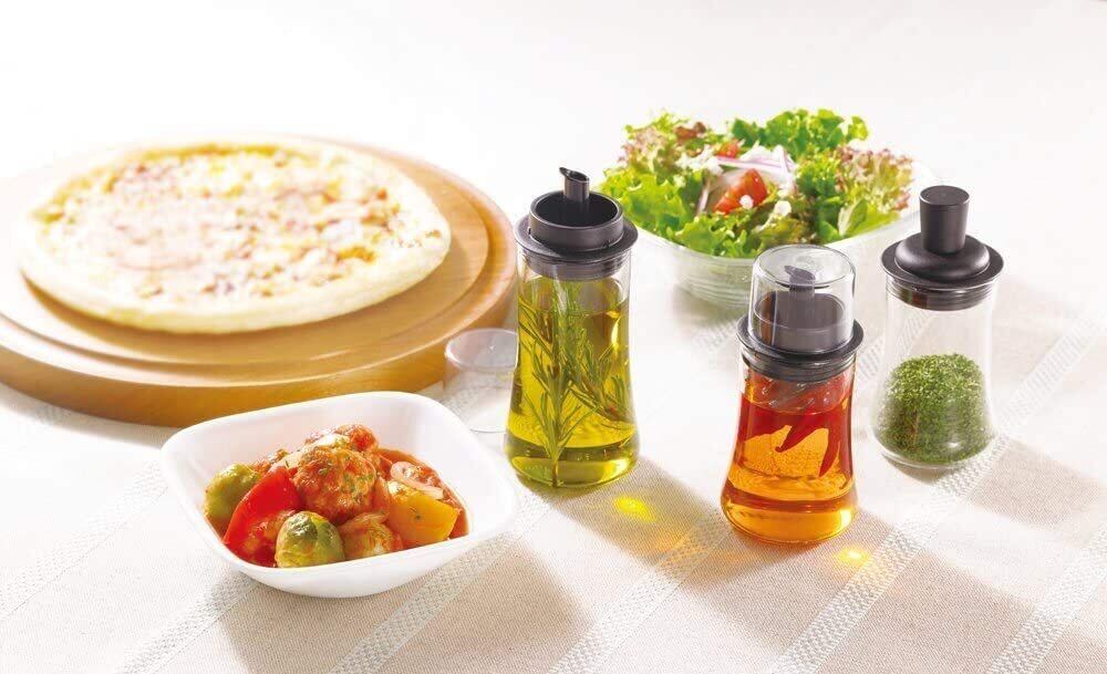iwaki(イワキ) 耐熱ガラス 調味料入れ オイルボトル オイル差し ブラック M 160ml フタ付き KT5032-BKO