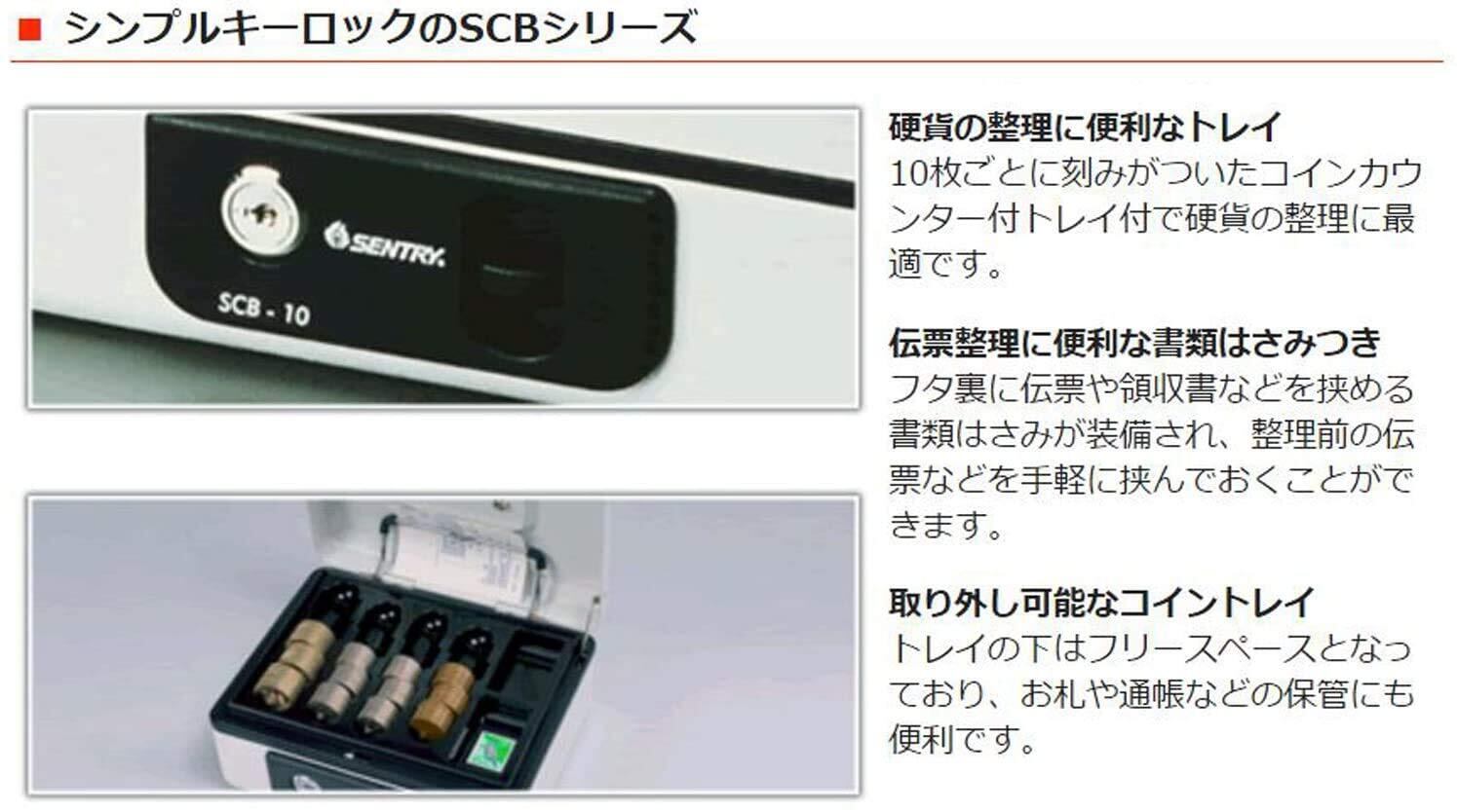 SENTRY (セントリー) 金庫 手提げ金庫 小型 キャッシュボックス 収納ボックス 鍵付き A6 キーロック コインケース ワンタッチオープン ライトグレー SCB-8