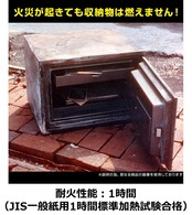 ●操作も簡単なリバーシブル錠のみのワンキータイプ●鍵のみで開閉できるので、煩雑な操作が不要●小型ですが、庫内はA4判の書類が入るよう設計されております●1時間耐火●安心の日本製●内寸:幅31.5×奥行24.5×高さ10.2cm●JIS一般紙用1時間標準加熱試験合格品