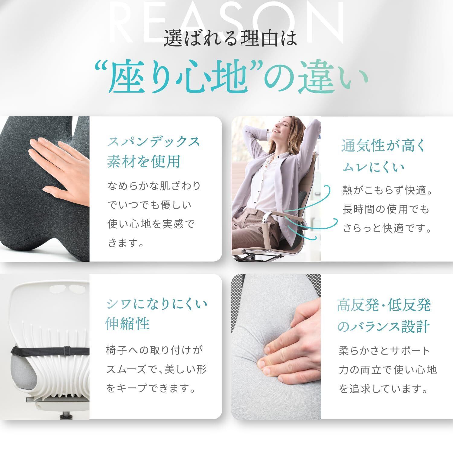 【独特な形状】背骨のカーブに沿うように厚みが調整されています。座面より少し上に設置していただくと、背中にピッタリフィットします!(ご自身のお身体にあわせてご調整ください)