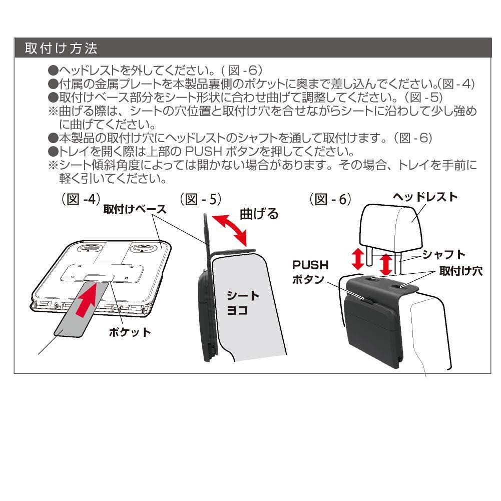 付属の金属プレートを曲げて調整することにより車のシート背面にフィットし、また本体の揺れも軽減します。