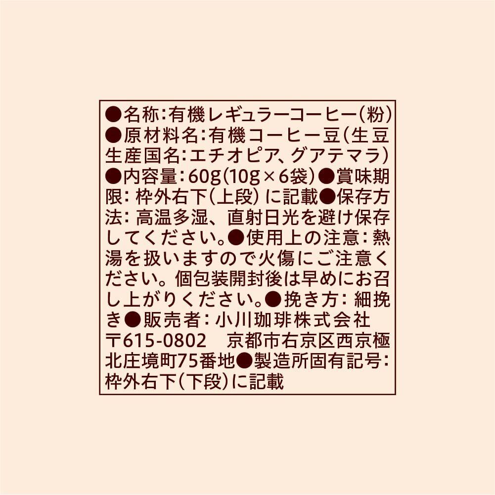 小川珈琲店 有機珈琲 フェアトレード モカ ブレンド ドリップコーヒー 6杯分 ×3個