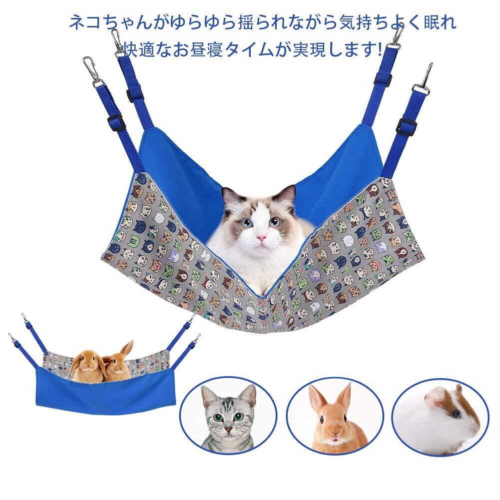 猫 ハンモック Blueekin キャットハンモック ヒモ調整可能 56cm x 46cm 耐荷重10KG 大きい ペット ベッド ねこハンモック ケージ用 通気性 日向ぼっこ 遊び場 金具丈夫 丸洗い 夏冬両用(猫) | impsmile