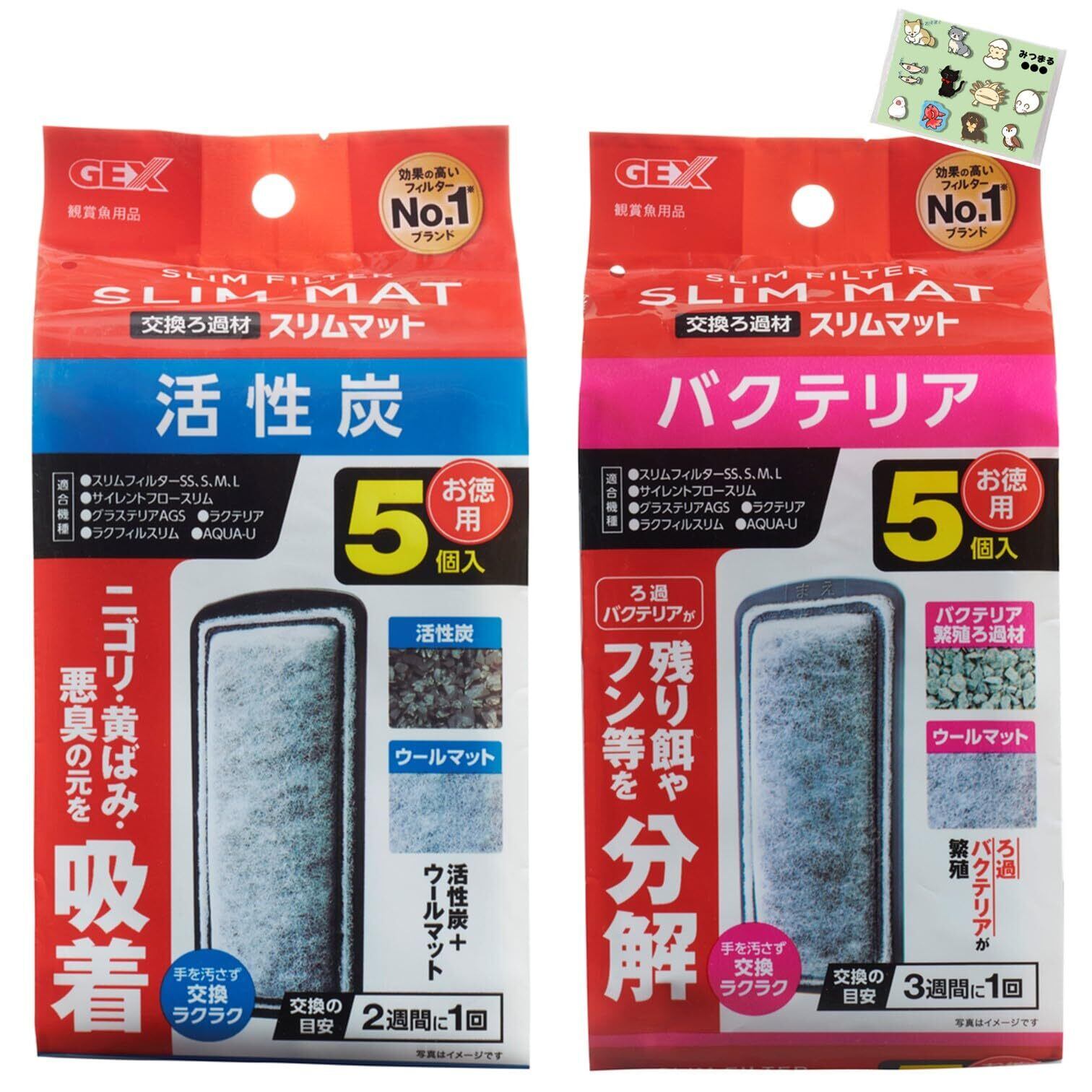 ジェックス スリムフィルター 交換用スリムマット まとめ買い みつまる本舗オリジナルティッシュ付き (「活性炭マット5個入」×1個+「バクテリアマット5個入」×1個)