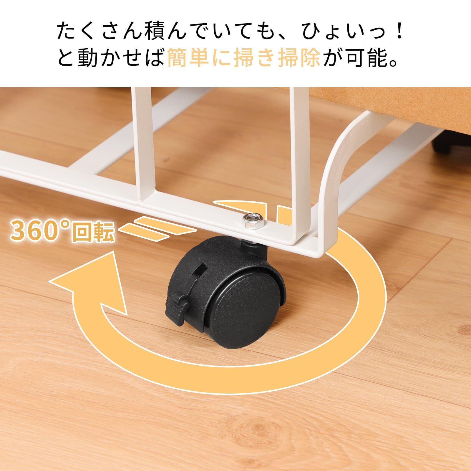 【キャスター付き、移動可能】360度動かせるキャスター付きだから、お掃除の時にちょっと動かすのも簡単!ダンバールが溜まって重くなってもそのママ運べばゴミ出しも楽です。