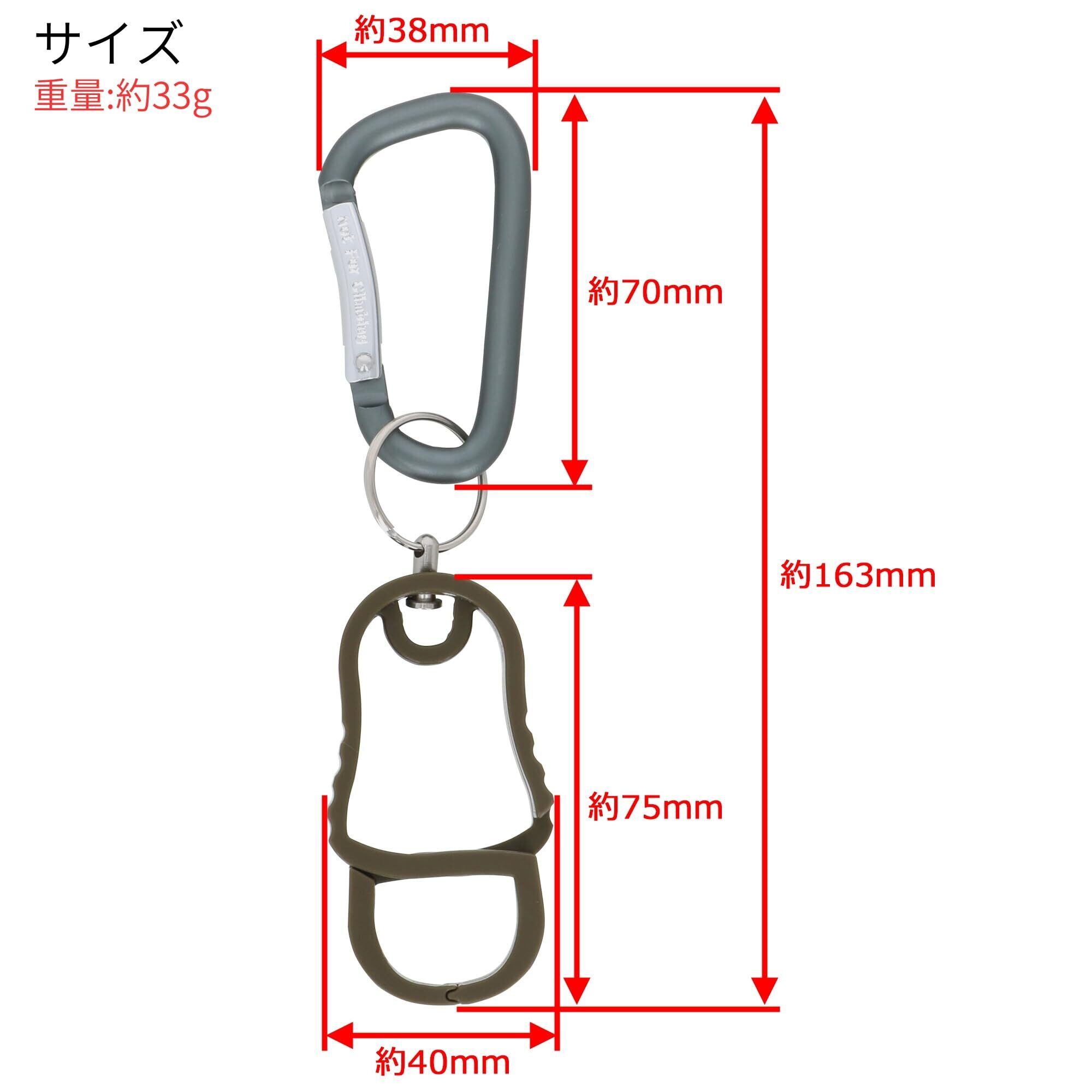 本体材質:ポリアセタール樹脂、リング材質:鉄、カラビナ材質:アルミ