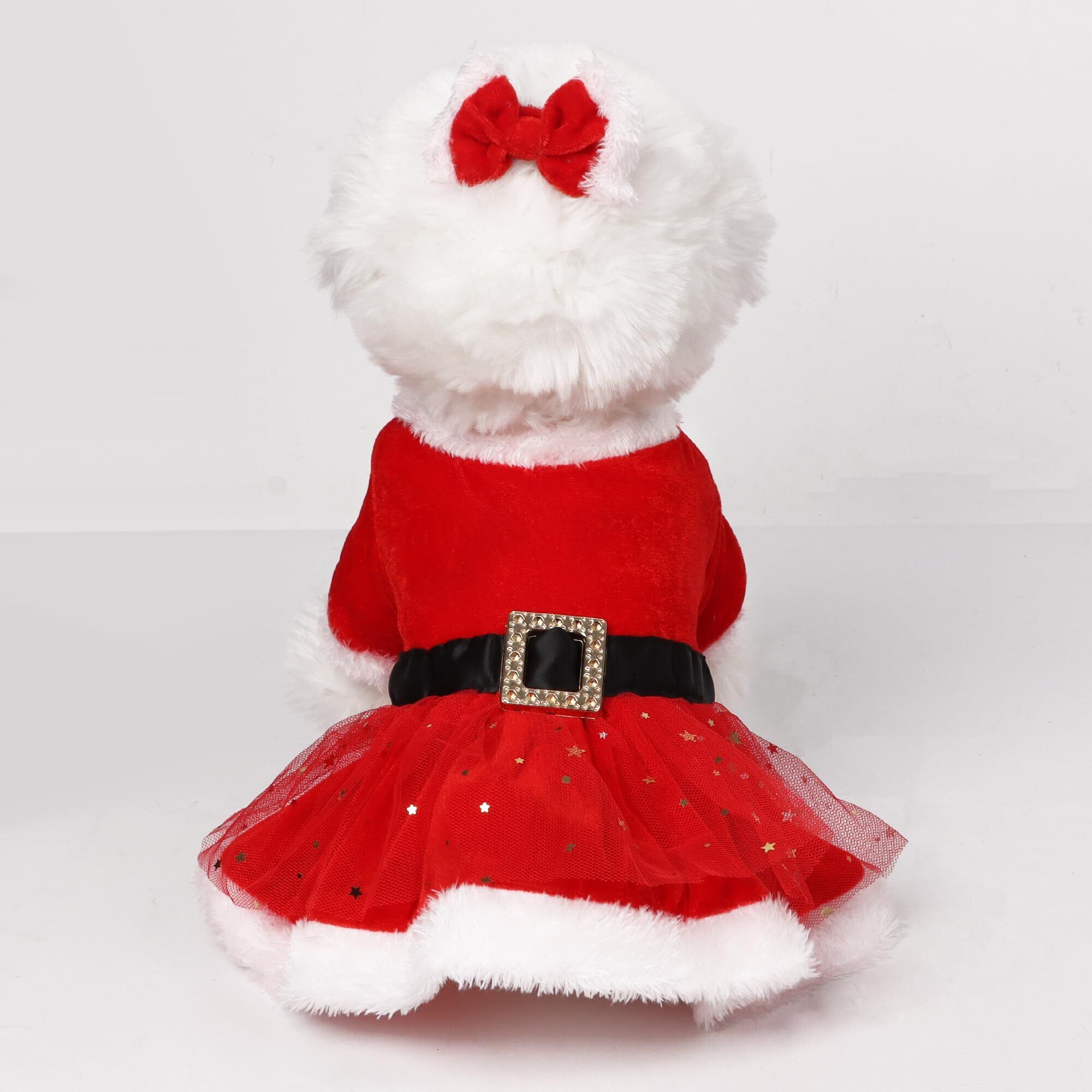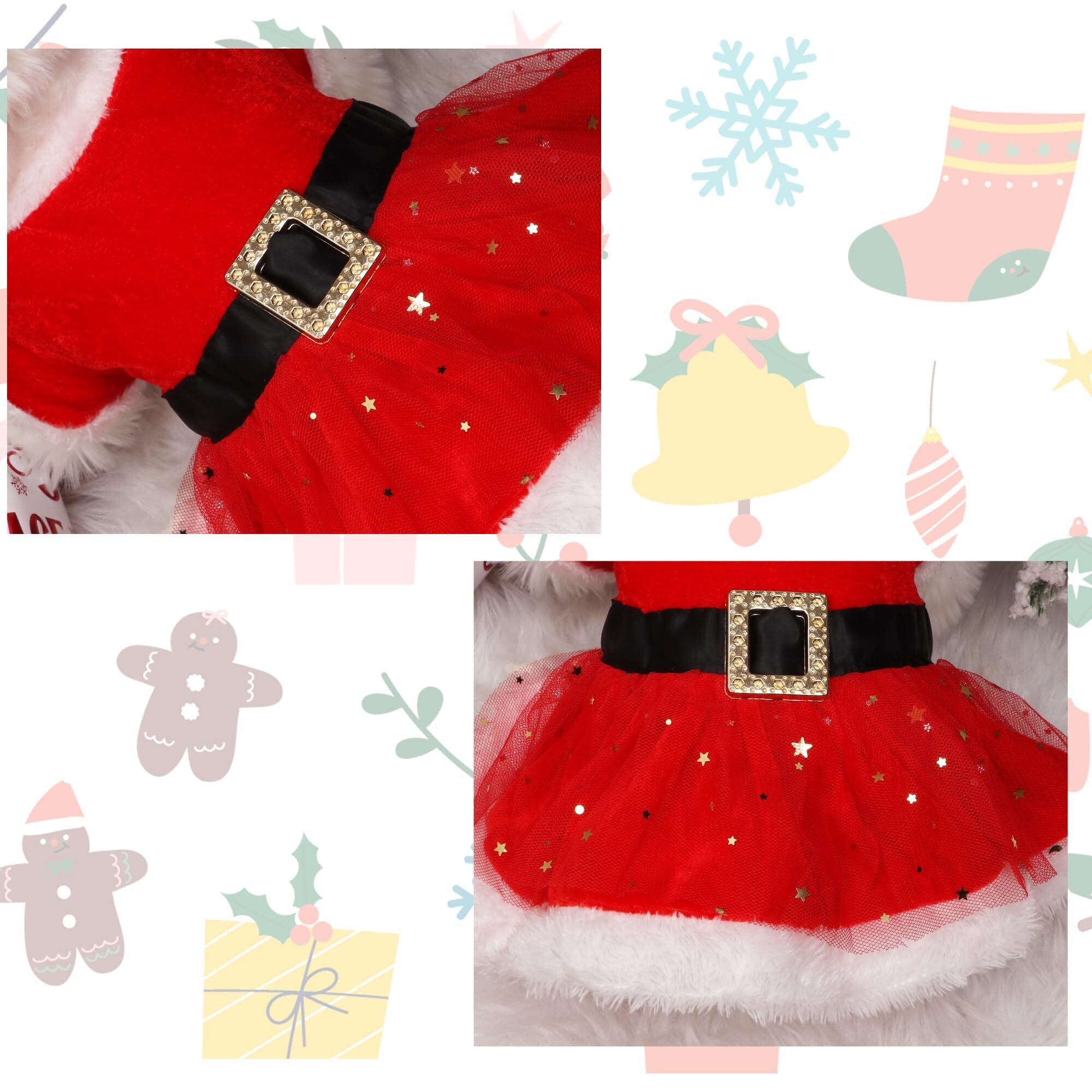 DERAYEE クリスマス 猫の服 犬服 小型犬 帽子 防寒 保温 サンタ 秋冬服 二足歩行 可愛い ペット用品 仮装 コスチューム (S, クリスマスカート)
