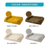ワンちゃんが長く休めるように、体圧分散性に優れたプロファイルウレタンと巻き綿で、絶妙な支持性を実現しました。また、ワンちゃんの数倍の体重の人間が座っても床づきしない底材。綿100%の厚手のオックスカバーは、使うほどに味がでてきます。