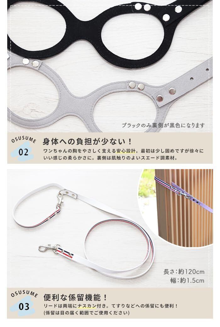 メガネ型ハーネス・リード【kamakuradog 鎌倉ドッグ】 犬 猫 人気 おしゃれ 可愛い 散歩 メガネ型 胴輪 小型犬 犬用胴輪 調節可能 身体に優しい 着脱簡単 負担が少ない (パープル, ハーネスL(単品)) | impsmile