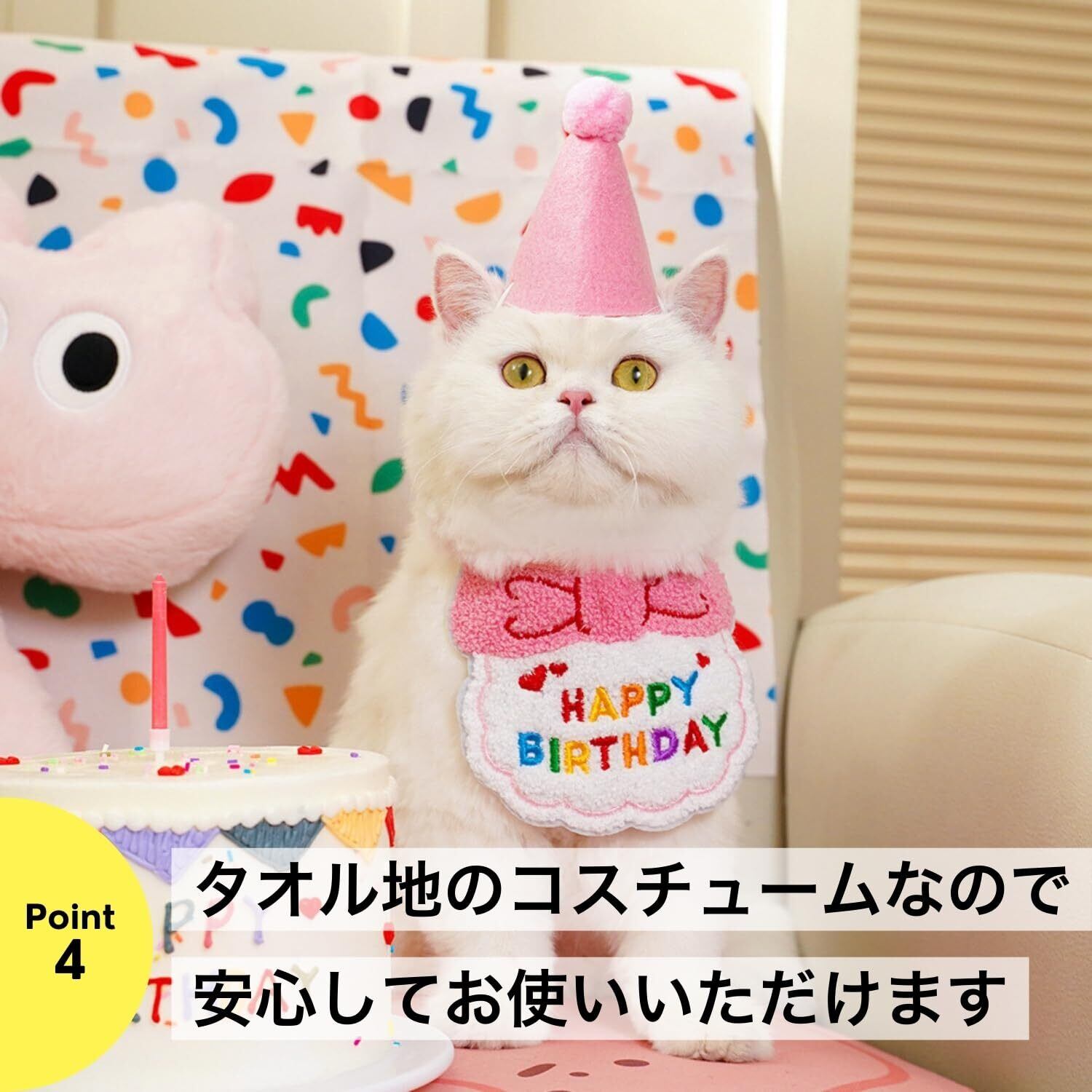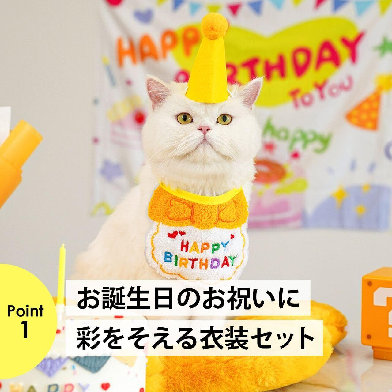 【記念日をより華やかに…】大切なペットのお誕生日のお祝いに彩をそえるペット用の帽子とよだれかけの衣装セットです。