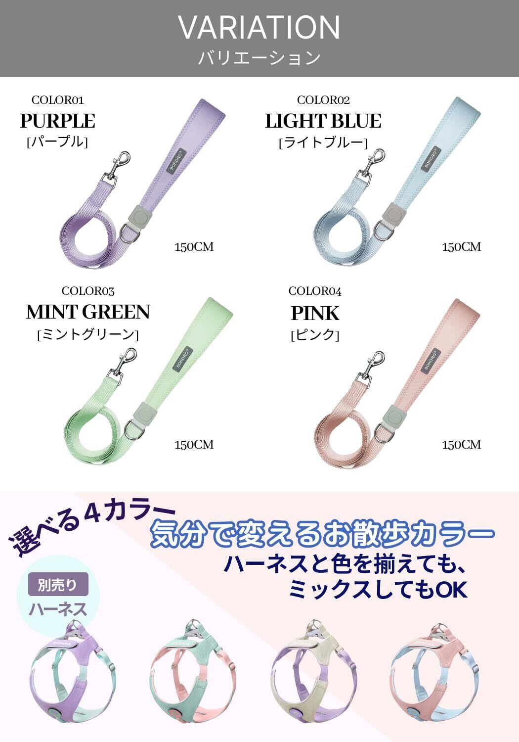 [Pawspick] 犬 ハーネス リード 1.5m 軽量 軽い 可愛い ソフト 伸びない 丈夫 持ちやすい 洗える 散歩 猫兼用 (パープル, リード150cm)