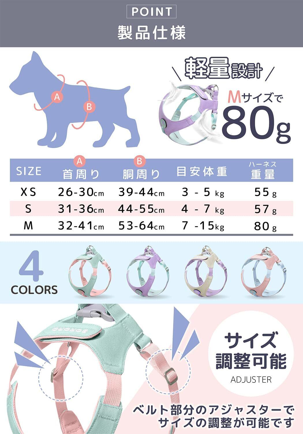 [Pawspick] 犬 ハーネス 小型犬 中型犬 抜けない おしゃれ 可愛い 負担が少ない 胴輪 軽量 柔らかい 通気性 蒸れない 猫兼用 (ミントグリーン, S)