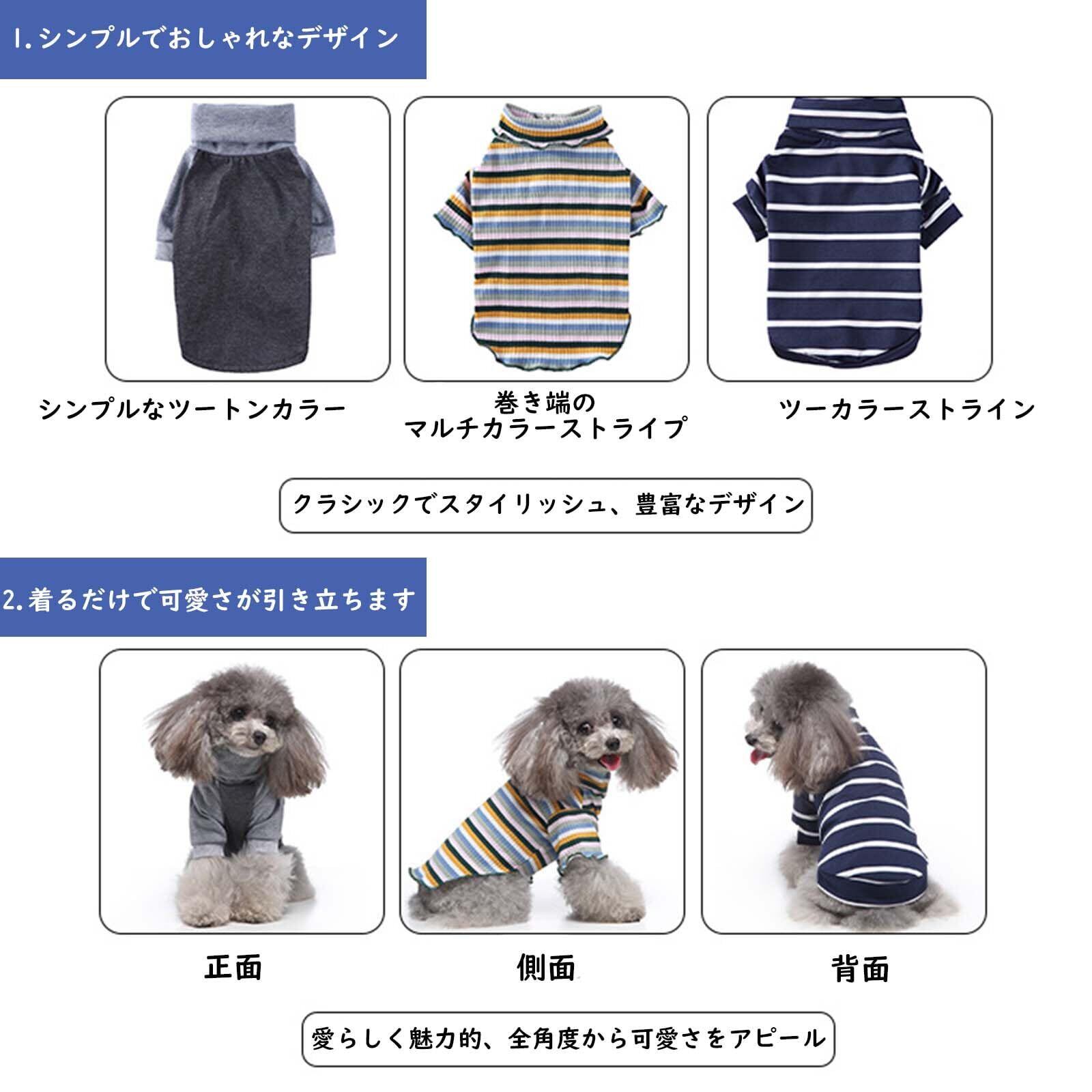 DICOCO 犬服 猫服 夏用 薄手 ハイネック ドッグウェア ネコ服 小型犬用 おしゃれ かわいい ペット服 全9色展開 通気性 軽量 快適 お散歩 フォトジェニック 灰白ストライプ M | impsmile