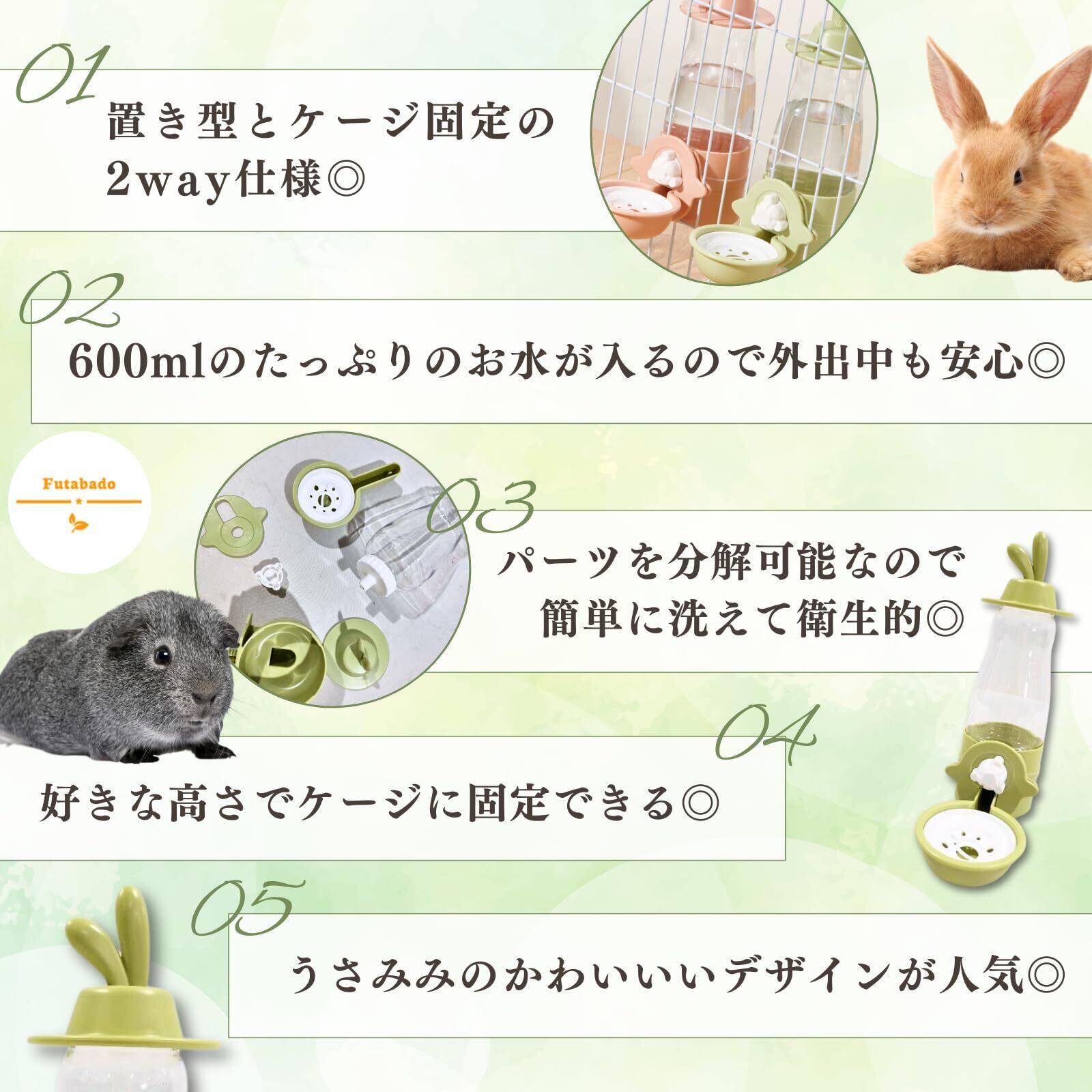 兎 水飲み器 うさぎ 水 ウサギ 水飲み器 ペット 小動物 水飲みボトル 給水ボトル 小動物 ウォーターボトル 600ml (グリーン, 600ml)