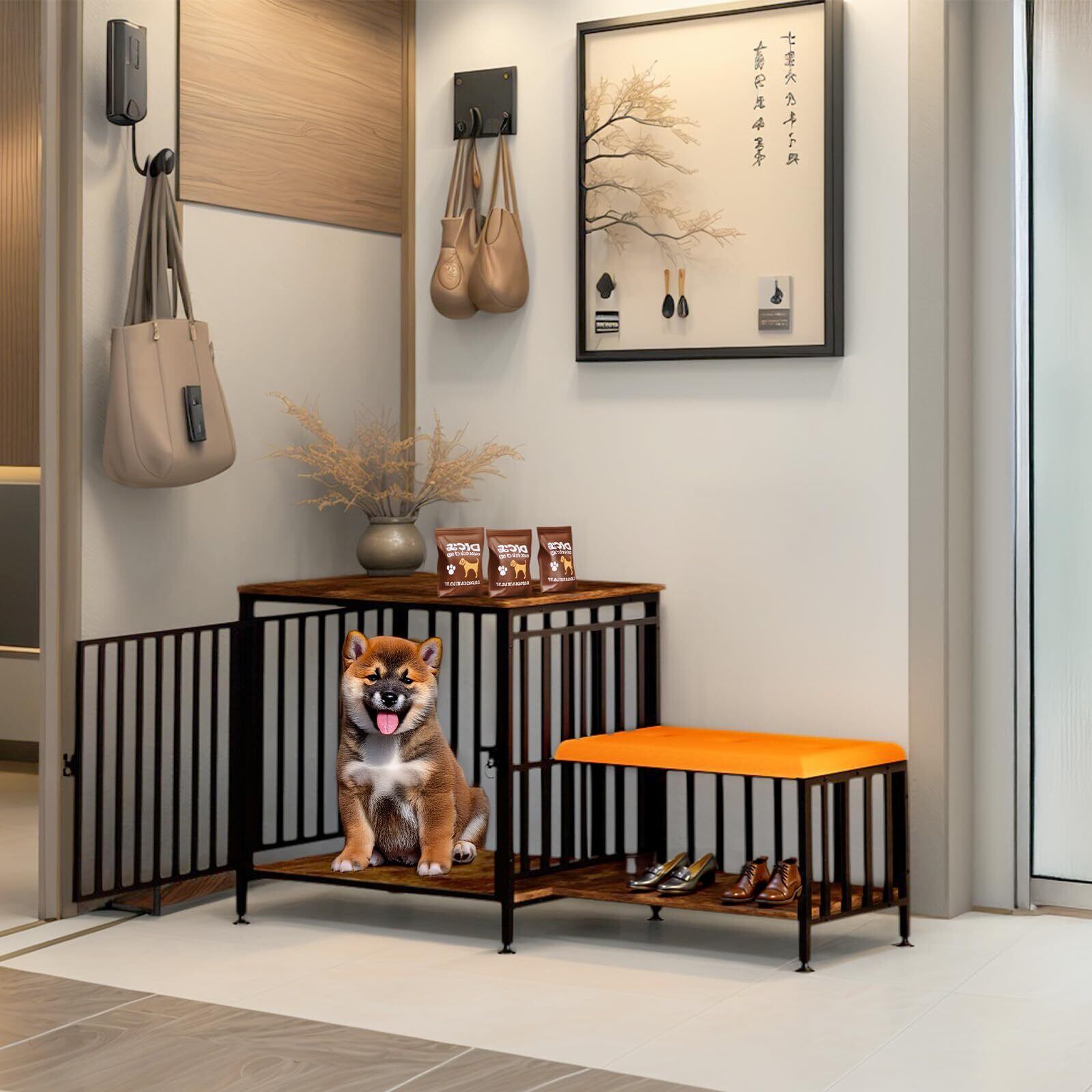 JSTTANC 犬用ケージ家具、ペットマット内蔵、調節可能な足、犬用ケージとフットスツールのクリエイティブな組み合わせ、小型・中型犬種に適しています サイズ:長さ50.9インチ x 幅22.34インチ x 高さ21.8インチ | impsmile
