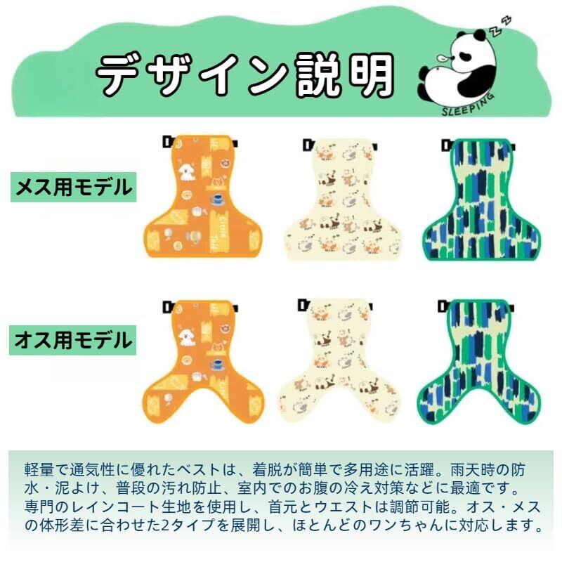 【着脱が便利】ボタンデザインで着脱は簡単です、出掛ける前にさっと着せられ、使いやすい!二重ボタンでウエストの調整もできます、愛犬を雨から守るお腹の部分が濡れない。リード穴が付いていて便利、下半分は蒸れ対策で大きく開放してます。運動時も排便時もワンちゃんの動きを損ないません。