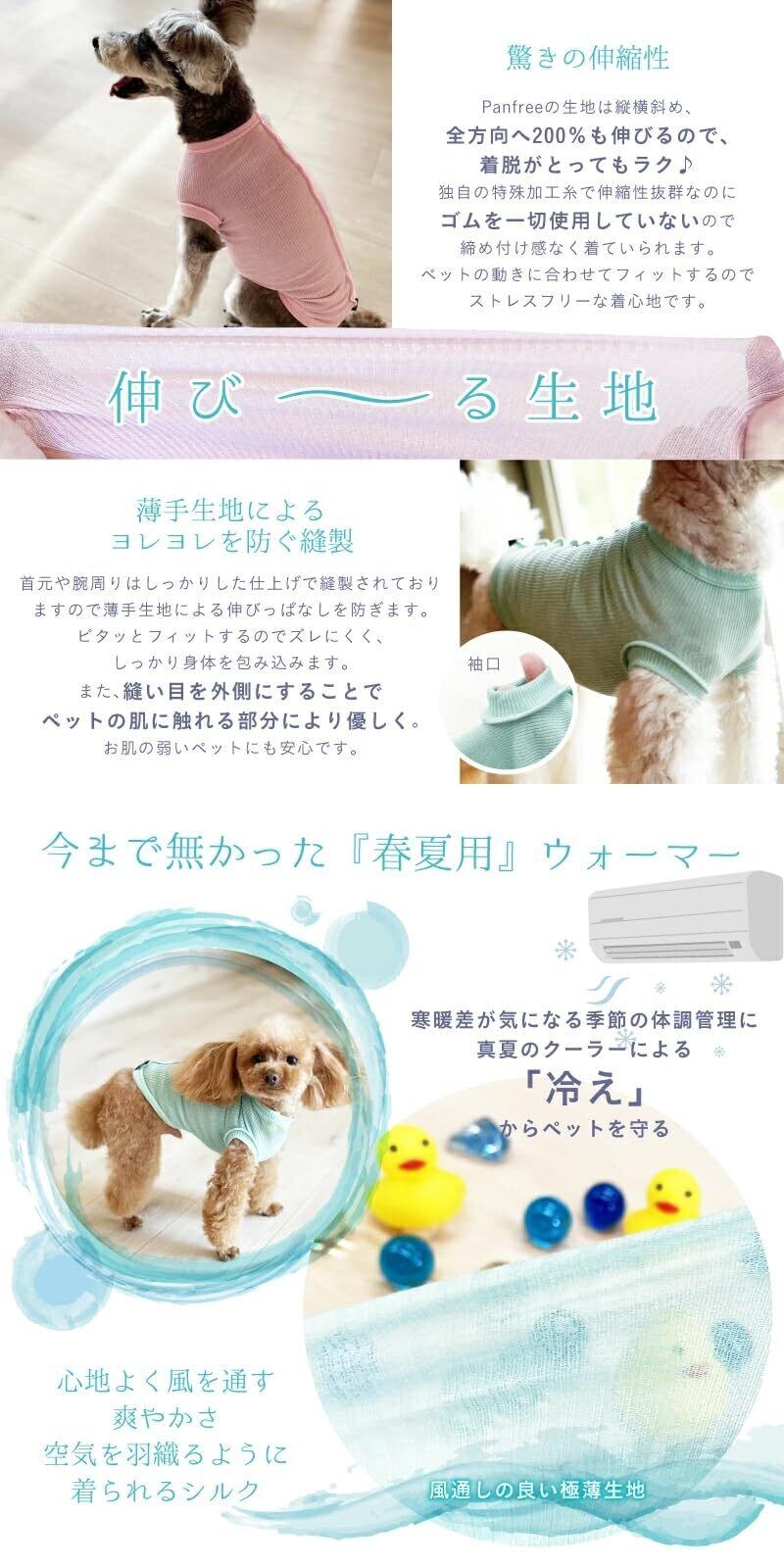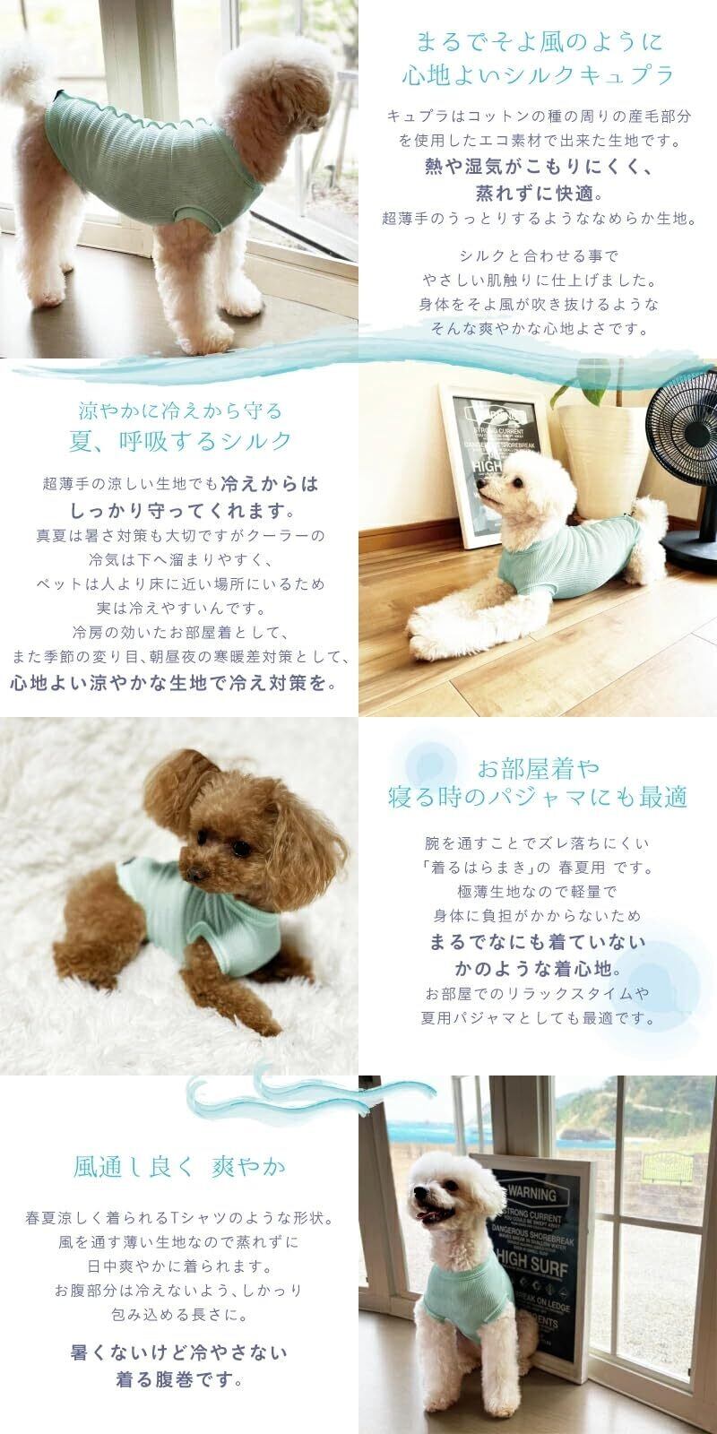 【日本製】キュプラ 着るはらまき Lサイズ [女の子用] シャーベットグリーン 犬用 ドッグウェア 冷え防止 シルク 犬服 ペット 大型犬 伸びる 犬の服 ドッグシャツ ペット服 春夏用 冷房対策 薄手 ペットウェア 犬 服