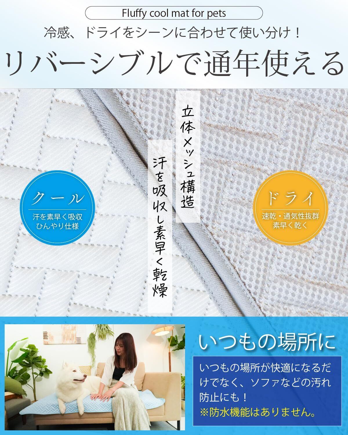 【リバーシブルで通年使える】夏だけ使うのはもったいない!そんな想いから、通年使って頂けるようにリバーシブルに仕上げました。ドライ面とクール面(ひんやり冷感)の両面を持ち合わせているので、意外と暑くなりがちな冬の自宅や、秋ごろ、春ごろと、通年お使いいただけるように仕上がっています。