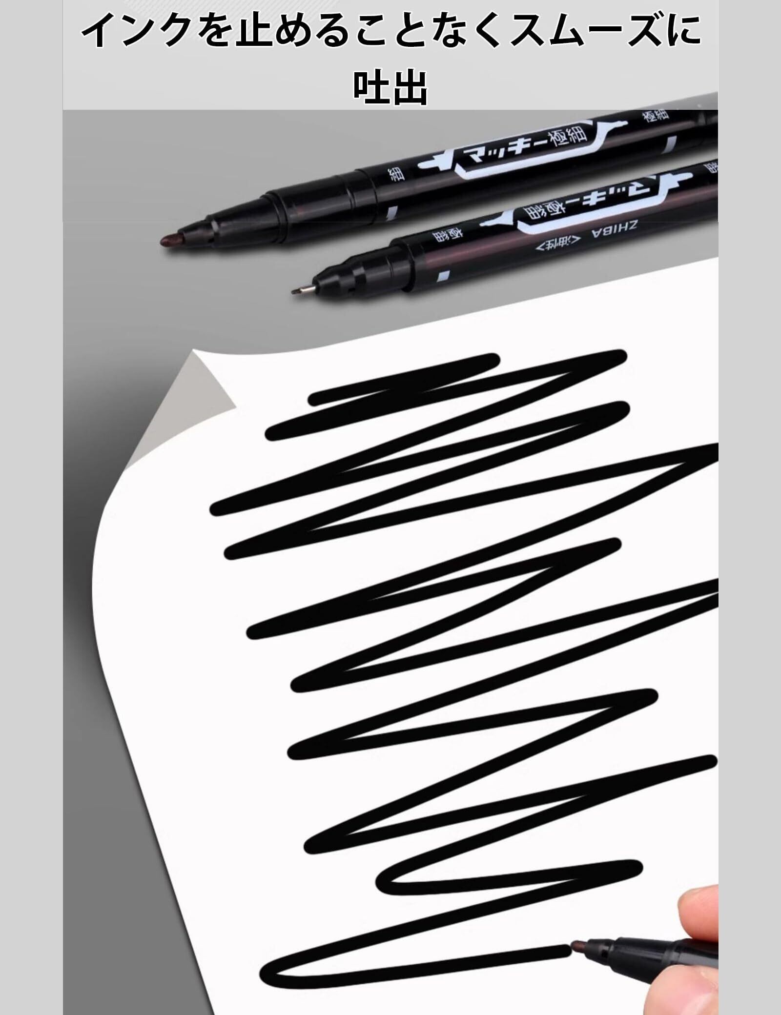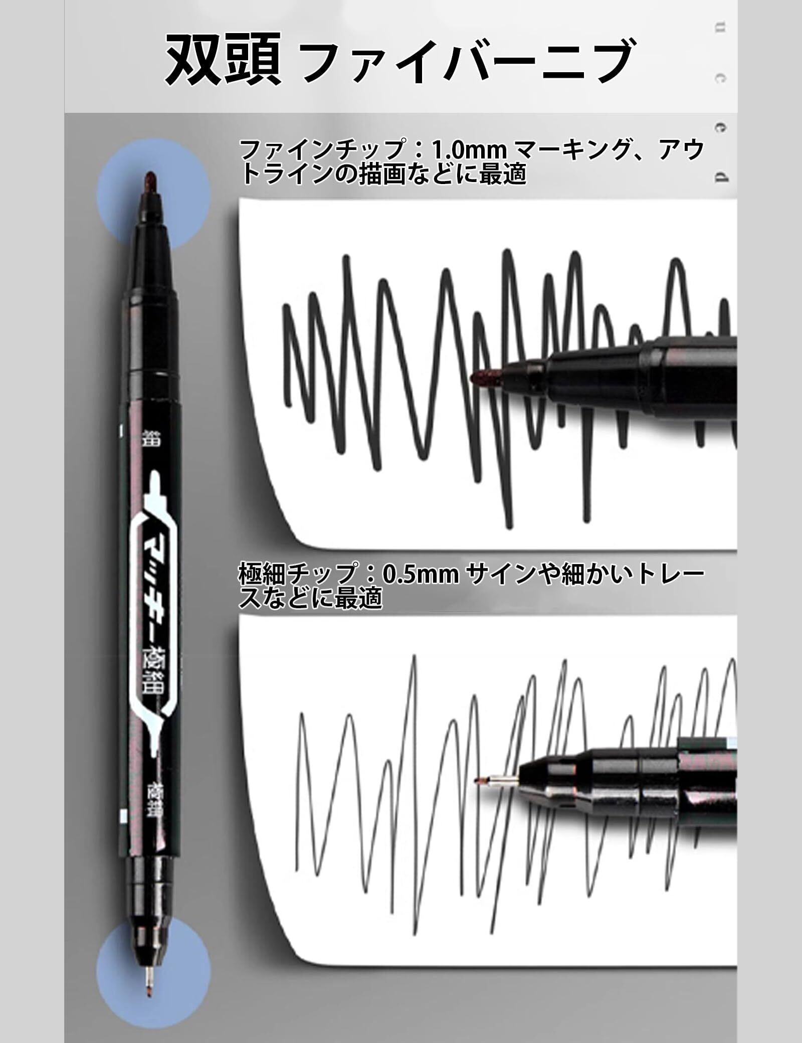aninako ダブルヘッド 油性ペン 20本 黒 極細 名前ペン 岩絵 金属 木材 セラミック ガラス 塗り絵 美術 漫画 手帳 MO-120-MC-BK