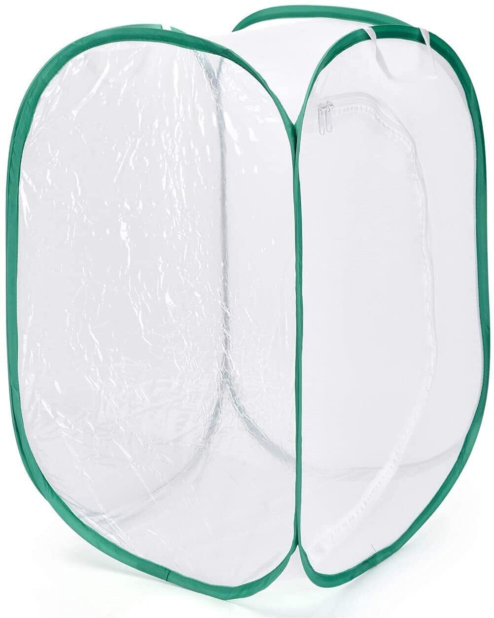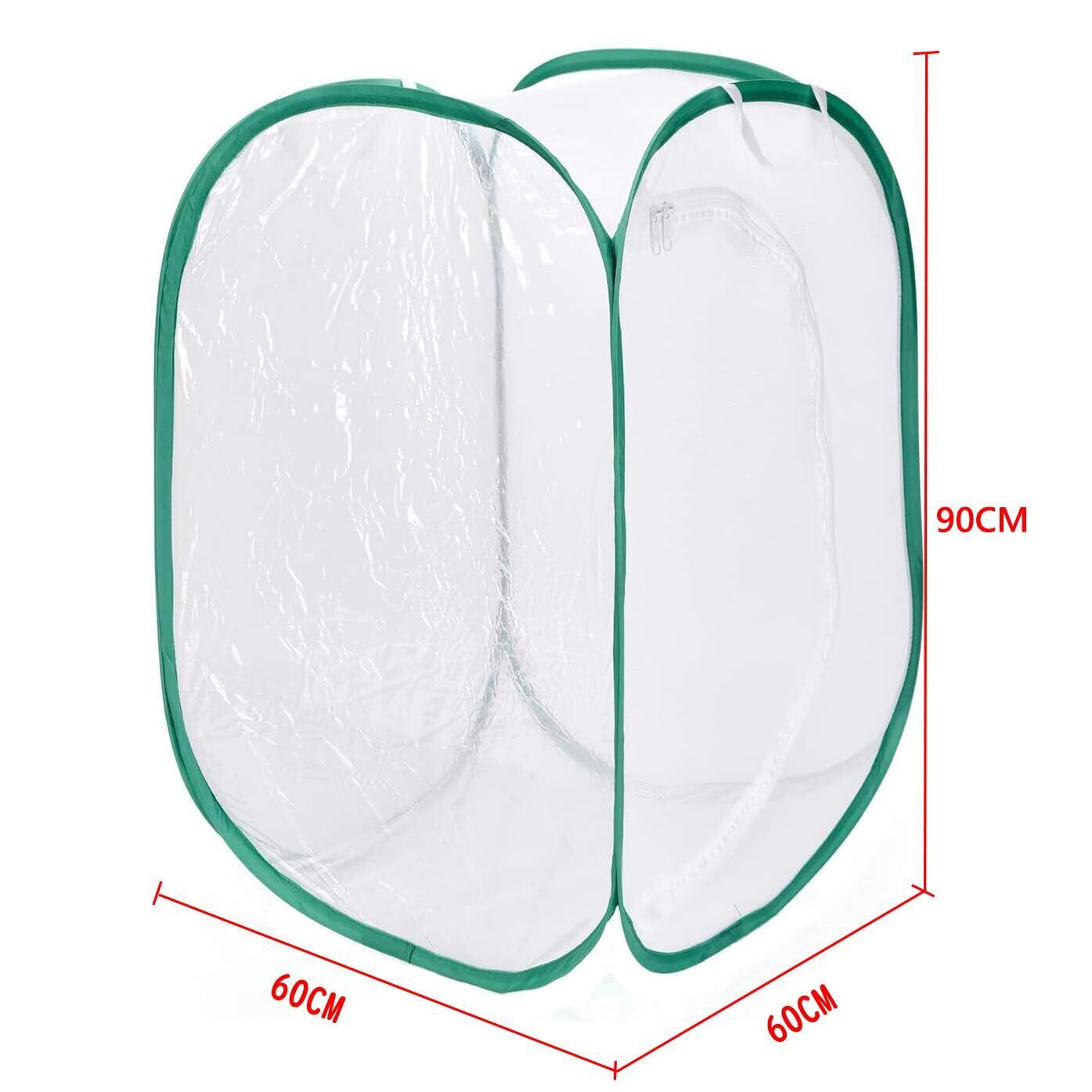 SATiNU 90*60*60CM 昆虫飼育箱 植物ケージ 標本箱 折り畳み虫かご 昆虫ケージ ポップアップハウジング 通気性 ネット 4サイズ 3色 (E 大 緑辺 ホワイト網) | impsmile