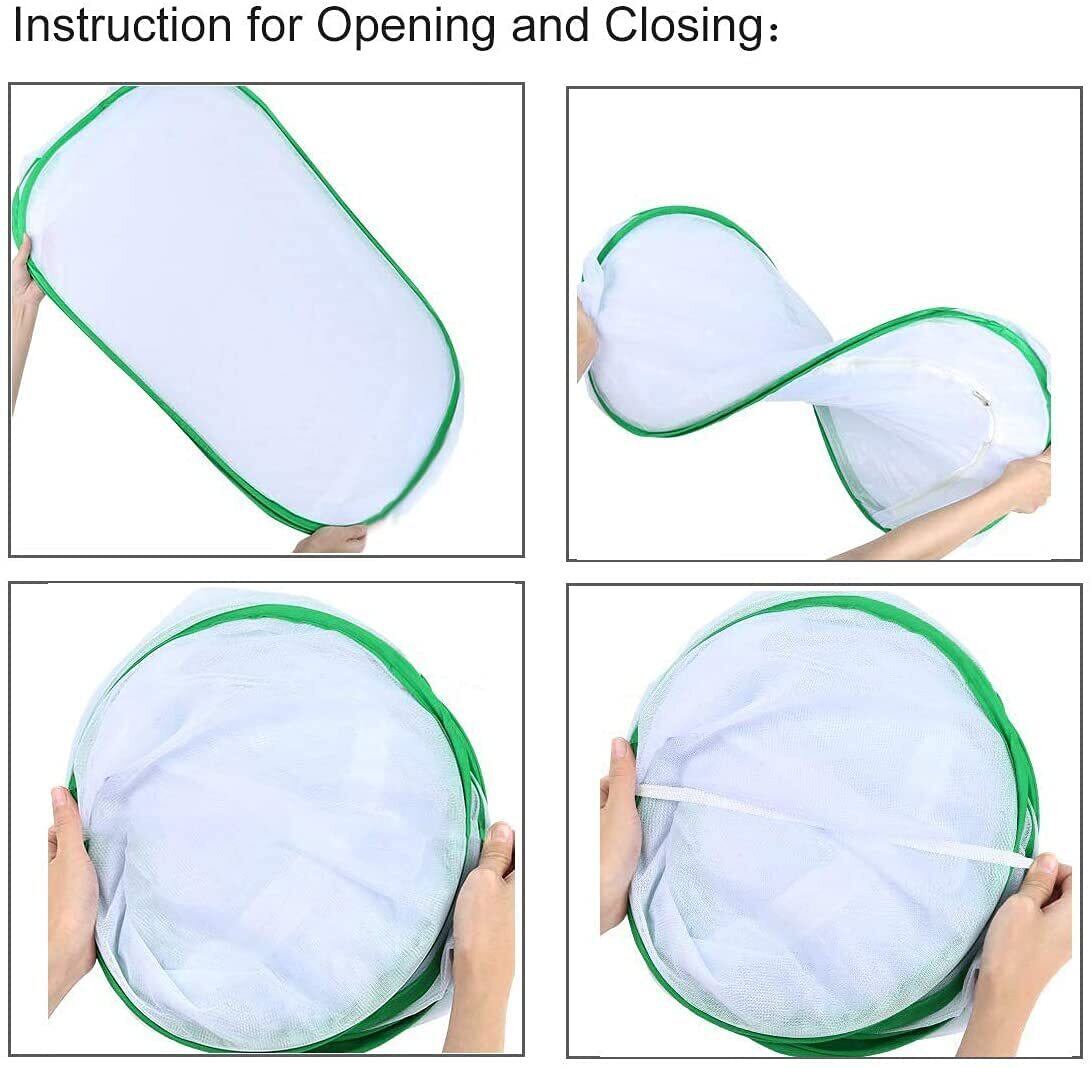 SATiNU 90*60*60CM 昆虫飼育箱 植物ケージ 標本箱 折り畳み虫かご 昆虫ケージ ポップアップハウジング 通気性 ネット 4サイズ 3色 (E 大 緑辺 ホワイト網)