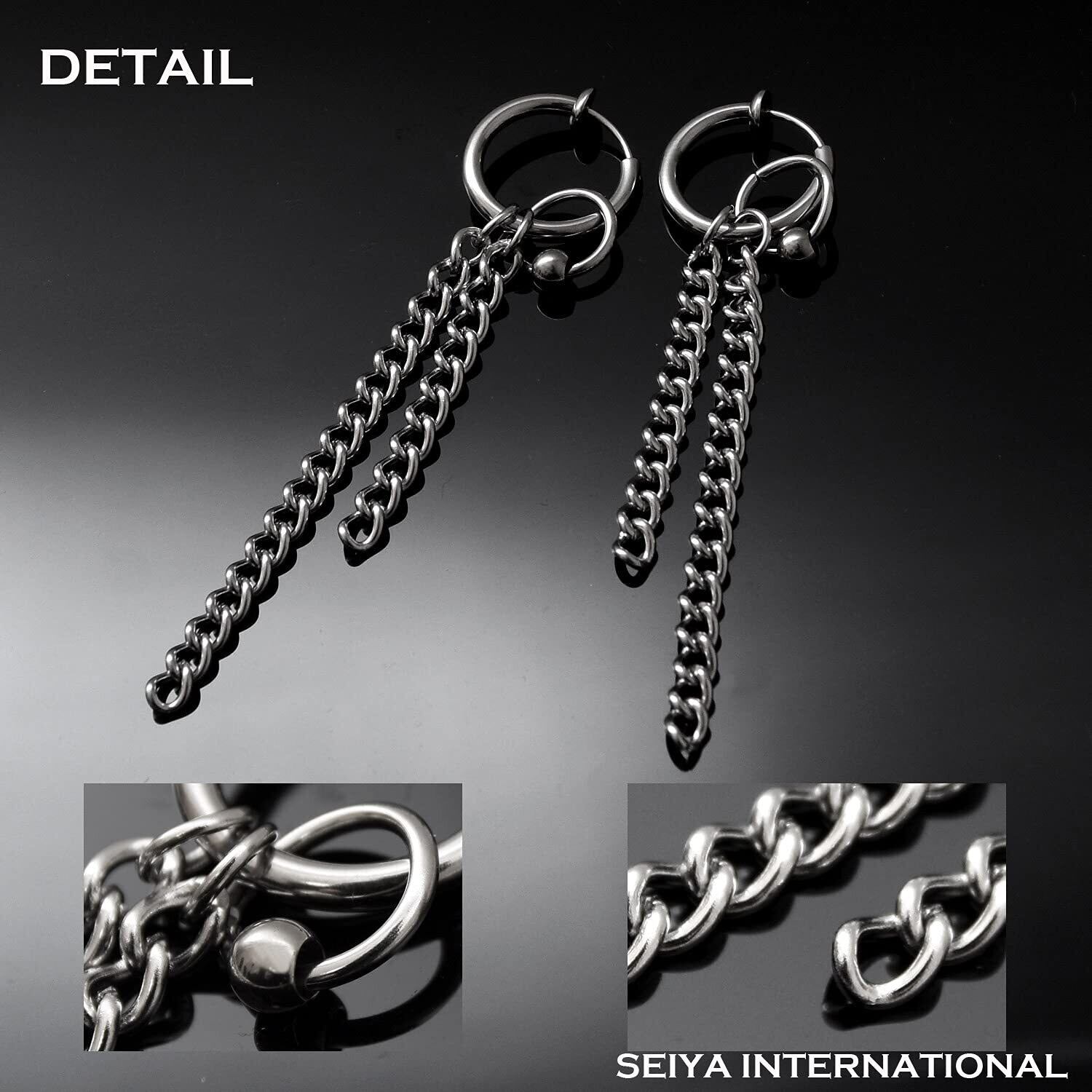 【 デザイン 】定番のフープタイプにチェーンやスティックが付いた揺れるフェイクピアス。チャーム(パーツ)は着けたり外したりできるのでお好みのスタイルで着用可能です。 韓国 K-POPアーティスト、韓国アイドル、日本のダンサー、HIPHOP、B系など多数着用しているデザインです。通常のフープイヤリングに飽きてしまった方にとてもオススメなアクセサリーです。ピアス穴不要なので簡単に着用でき、男性、女性、お友達や同僚、恋人へのクリスマス、バレンタインデー、誕生日などの記念日のプレゼントとしてもオススメです。