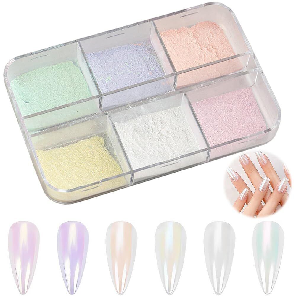 多彩なカラーバリエーション:6種類のオーロラグリッターがあり、ベースカラーによって色が変わるので、様々なネイルアートを楽しむことができます。 あなたの爪を輝かせてください。