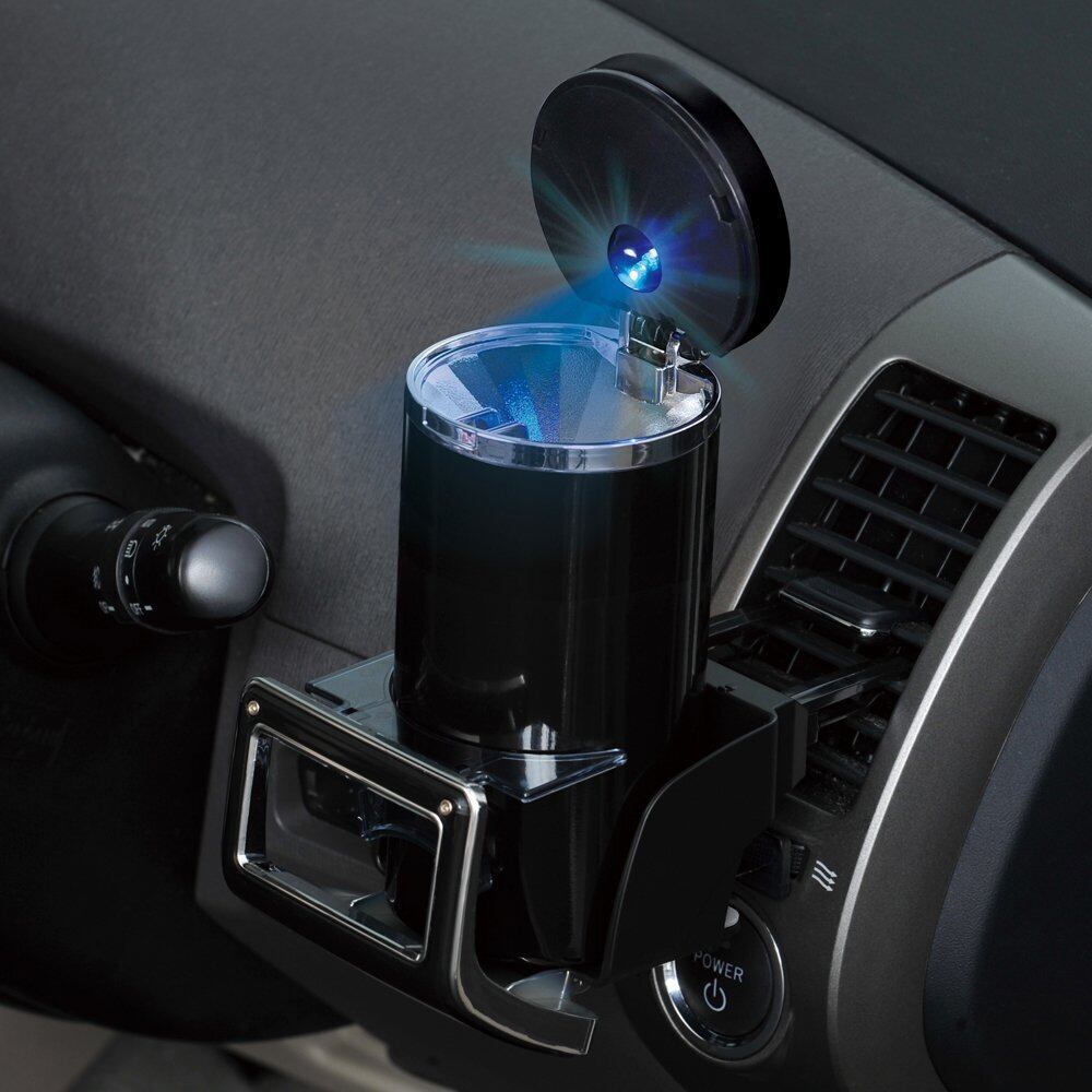 セイワ(SEIWA) 車内用品 灰皿 ソーラー缶アッシュ4ロング ソーラータイプ ブルーLED ブラック W651