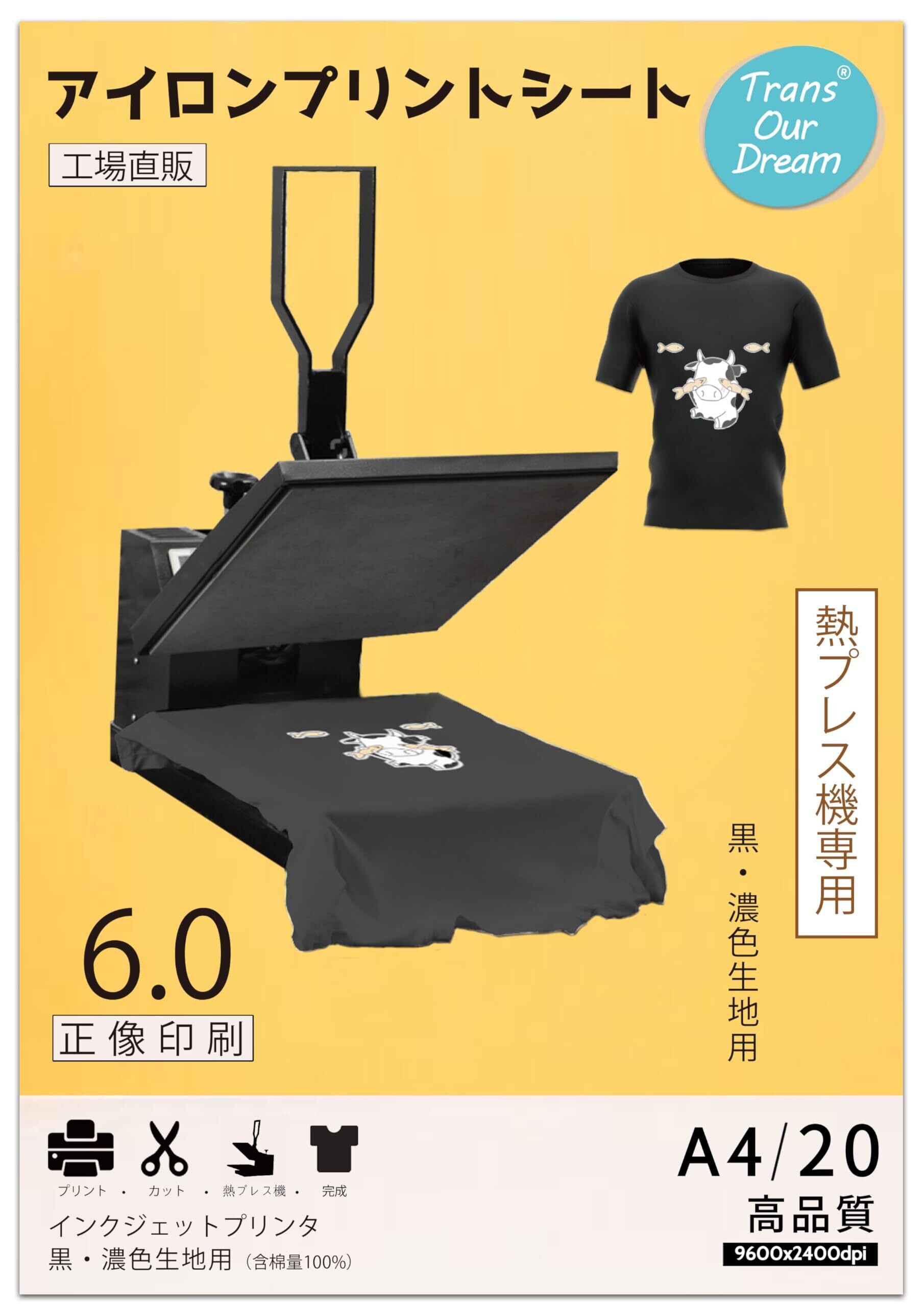TransOurDream 真正の転写シート アイロンプリントシート 黒·濃色生地用 A4 20枚 プリントシート Tシャツ用紙 転写紙 転写シート 熱プレス機専用 インクジェットプリンター用 JP-3-6-20