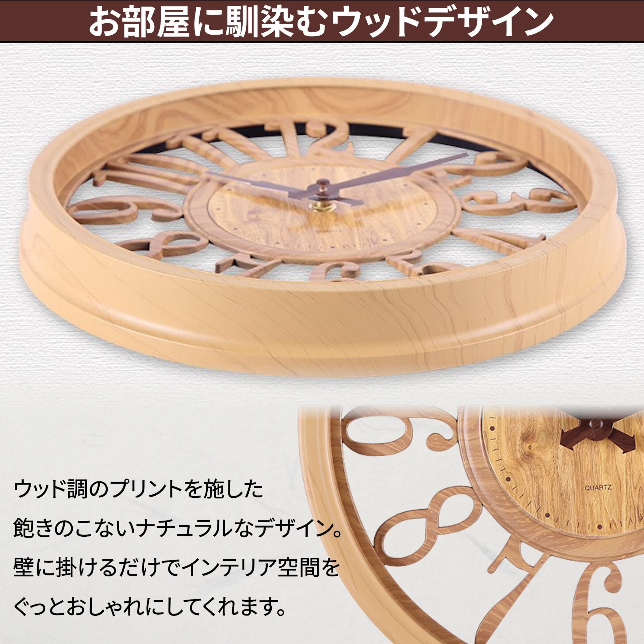 【北欧風のおしゃれな時計】北欧風のおしゃれでシンプルな壁掛け時計。木目調の温もりと落ち着きを感じる飽きのこないデザインで、リビングはもちろん寝室、勉強部屋、オフィス、お店などどんな場所にもなじみます。