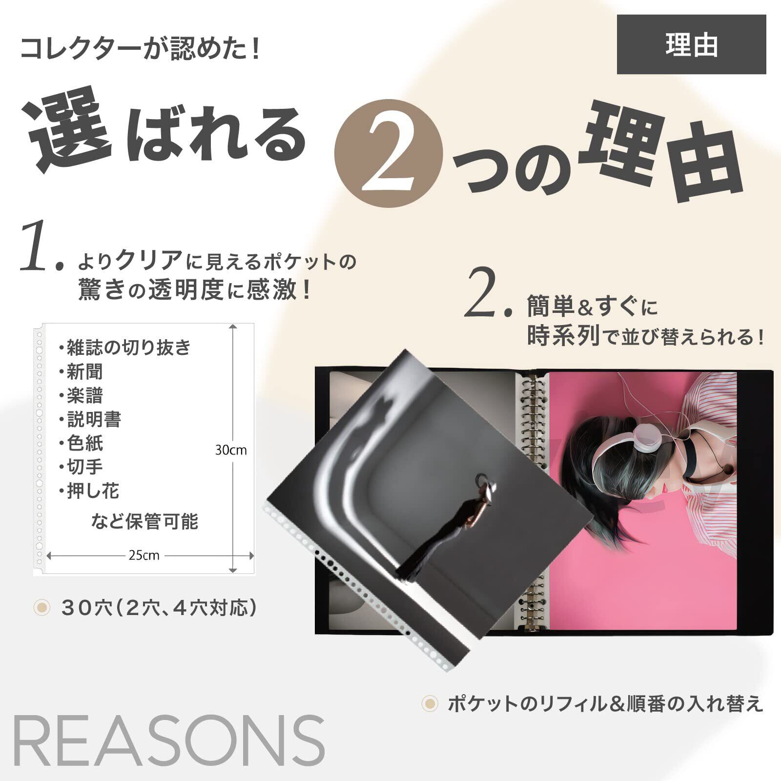 グリーンウィーク 雑誌切り抜き マガジン クリア ファイル A4変形ワイド 30穴 ポケットリフィル 100枚入