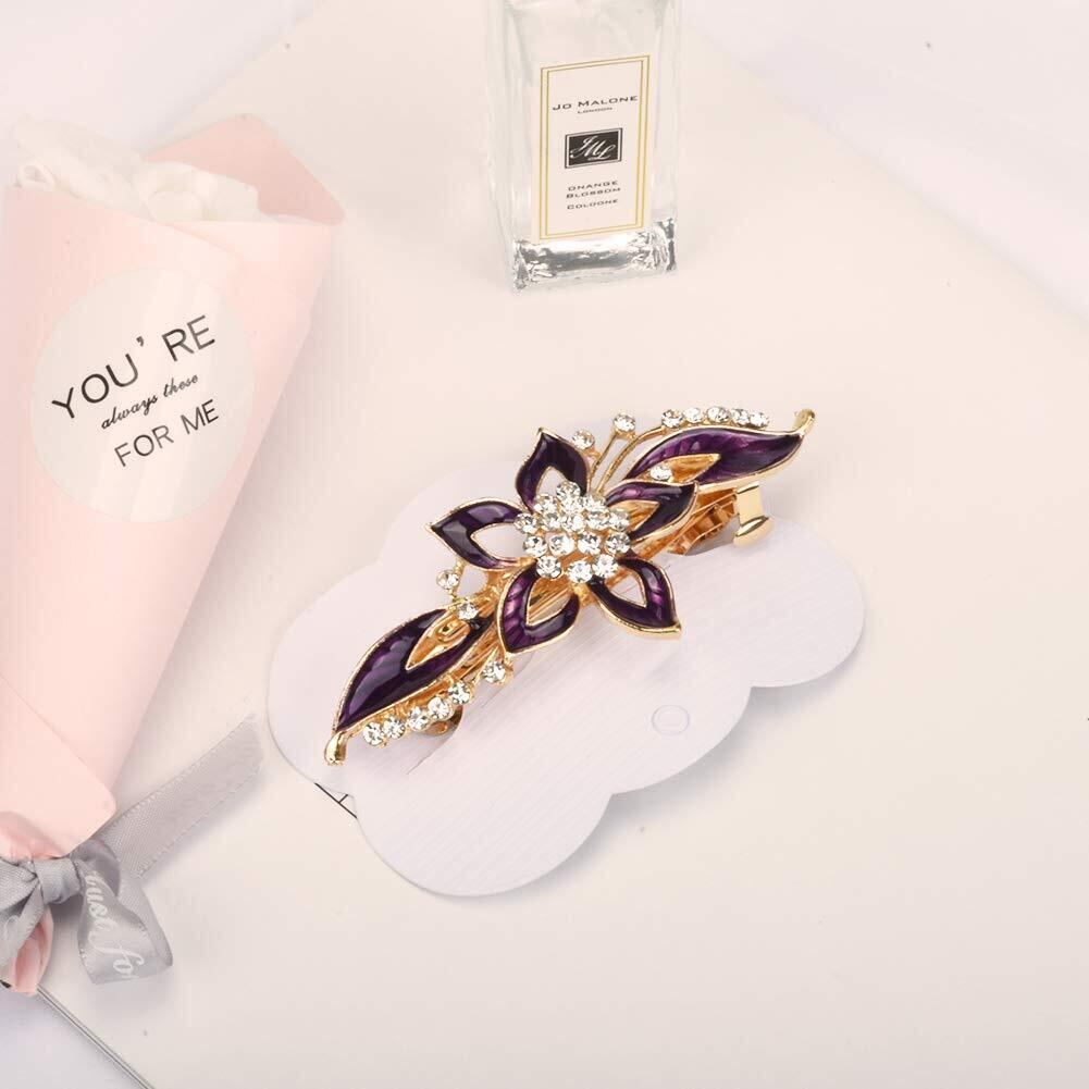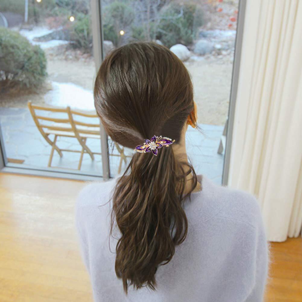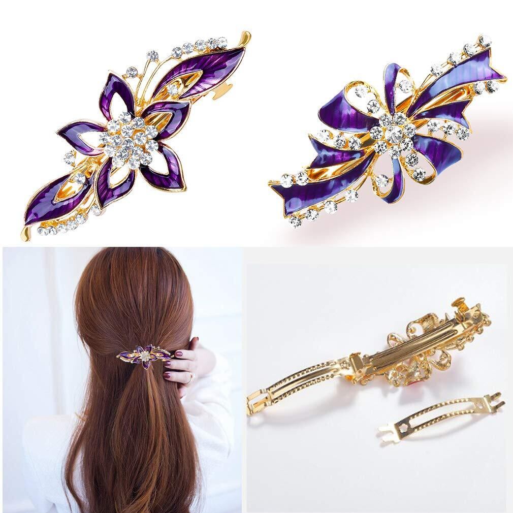 mefeny ヘアクリップ バレッタ 大きい ヘアピン リボン 髪留め 水晶 キラキラ髪飾り卒業式 ヘアアクセサリーお花 レディース 結婚式 パーティ紫 入学式 (Cパール)