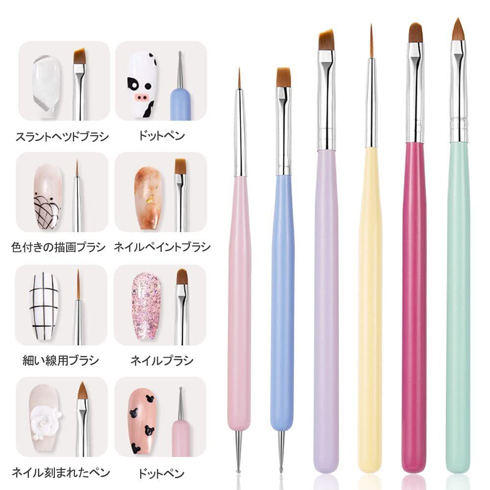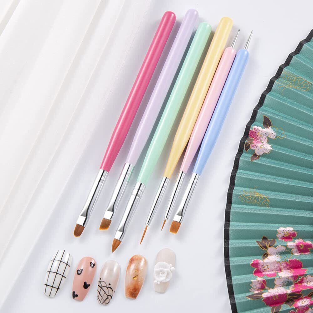 DFsucces ネイルブラシ ネイルアートブラシセット 可愛きジェルブラシ ネイルアート道具(マカロンカラー-6点セット)