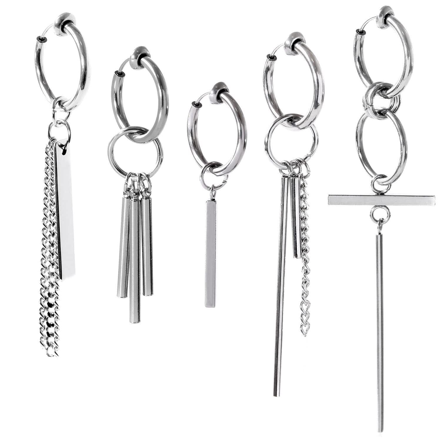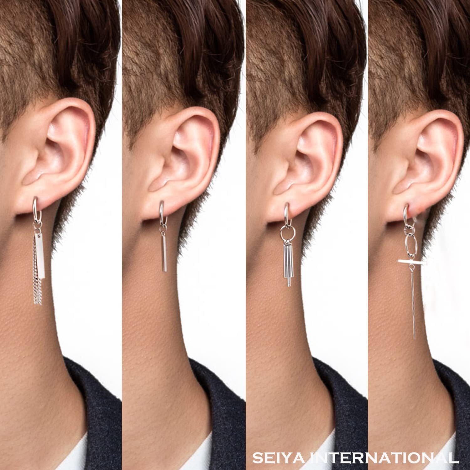 【 デザイン 】定番のフープタイプにチェーンやスティックが付いた揺れるフェイクピアス。チャーム(パーツ)は着けたり外したりできるのでお好みのスタイルで着用可能です。 韓国 K-POPアーティスト、韓国アイドル、日本のダンサー、HIPHOP、B系など多数着用しているデザインです。通常のフープイヤリングに飽きてしまった方にとてもオススメなアクセサリーです。ピアス穴不要なので簡単に着用でき、男性、女性、お友達や同僚、恋人へのクリスマス、バレンタインデー、誕生日などの記念日のプレゼントとしてもオススメです。